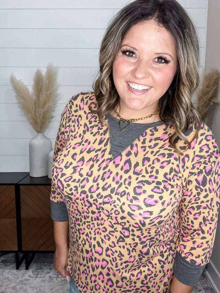 "Cambridge" Animal Print Lizzy 3/4 Sleeve Split Neck