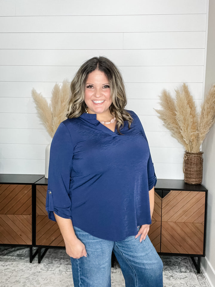 "What Can You Say" 3/4 Sleeve Split Neck (Navy)