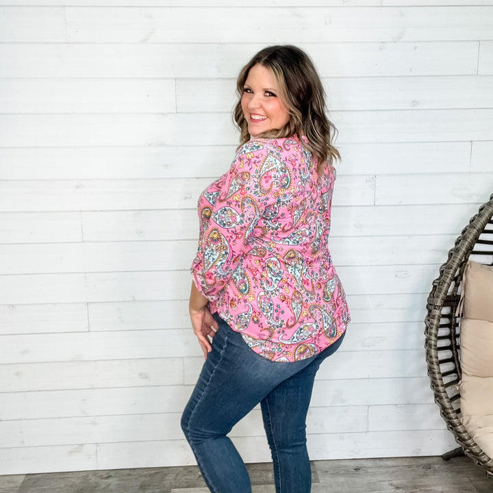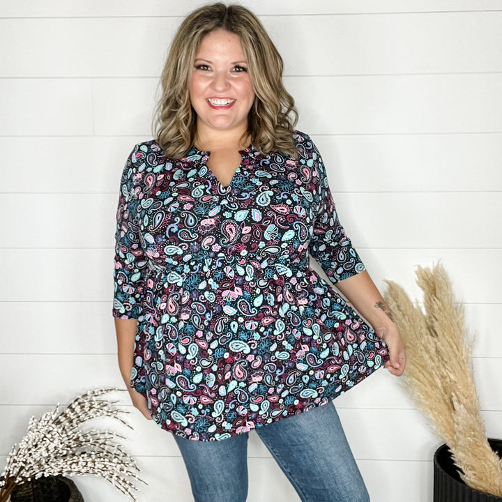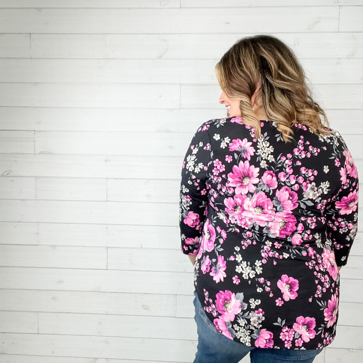 "Romancing" Floral Lizzy 3/4 Sleeve Split Neck