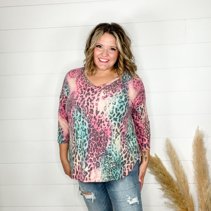 "Northern" Animal Print 3/4 Sleeve V Neck