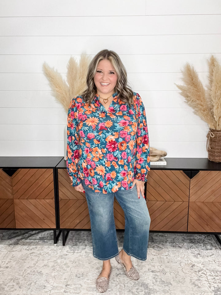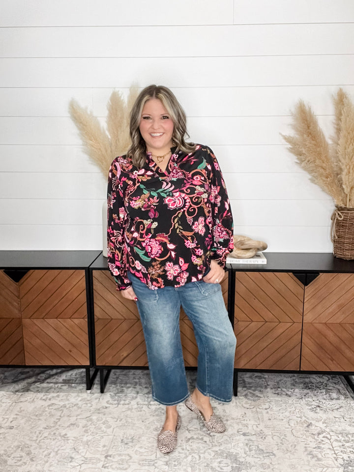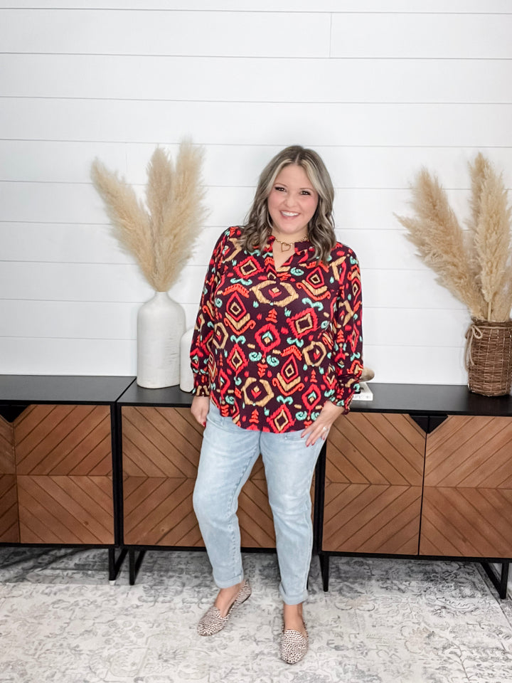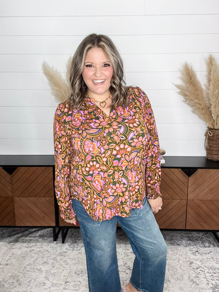 "Bryant" Lizzy Smocked Wrist Long Sleeve Split Neck