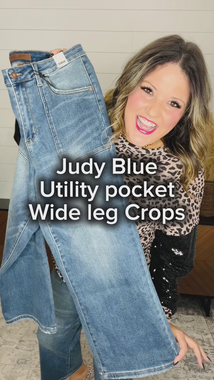 24.5 - 25 inch inseamJudy Blue "Summer Lovin" Released Hem Wide Leg Crops