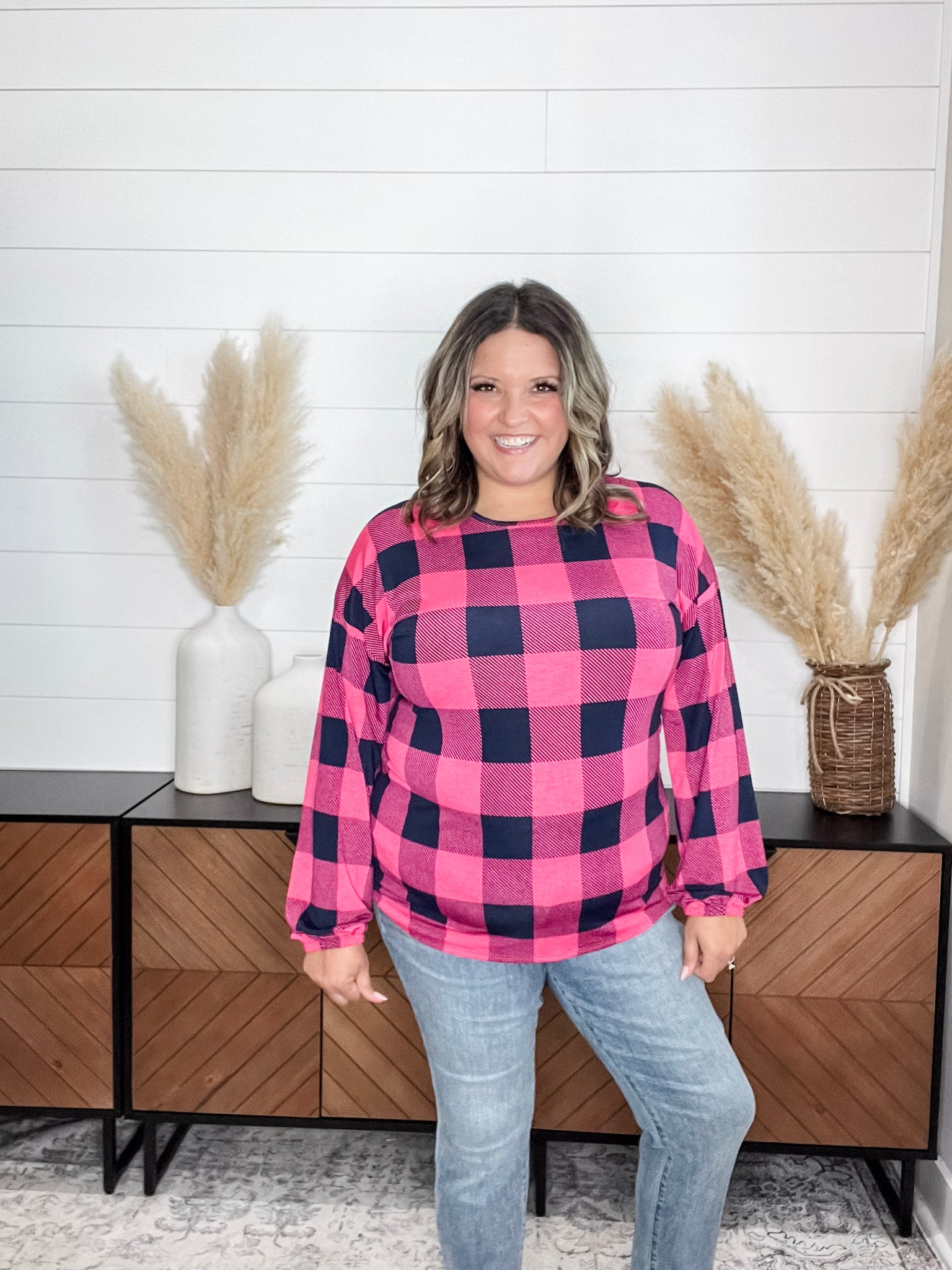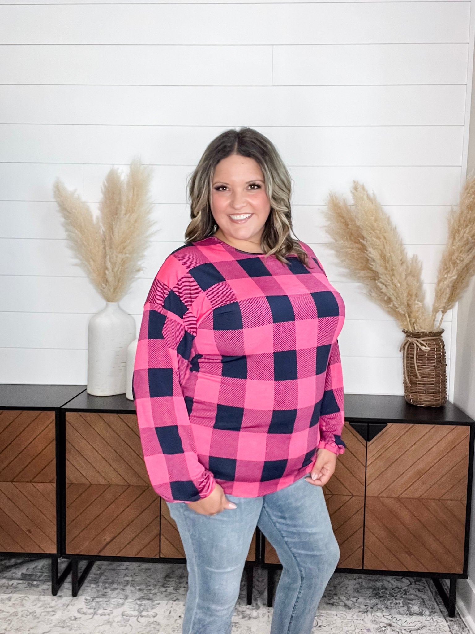 The "Tough Stuff" Balloon Long Sleeve offers a stretchy straight fit that moves with you, giving just the right amount of room to stay comfy all day. With elasticized wrists for a snug, playful touch, this top is perfect for layering or wearing solo. Ash rocks it in XL plaid—ready to add a fun, cozy vibe to your wardrobe!
