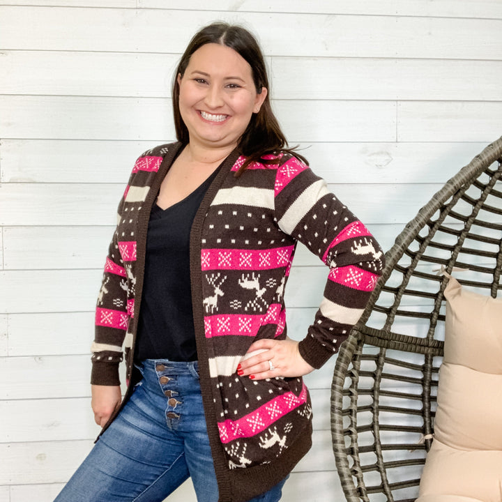 "Donner" Reindeer Pattern Cardigan with Side Pockets