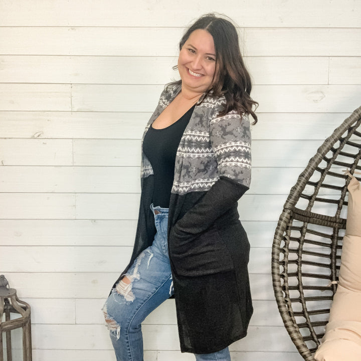 "Reindeer Games" Hooded Cardigan with Reindeer Print