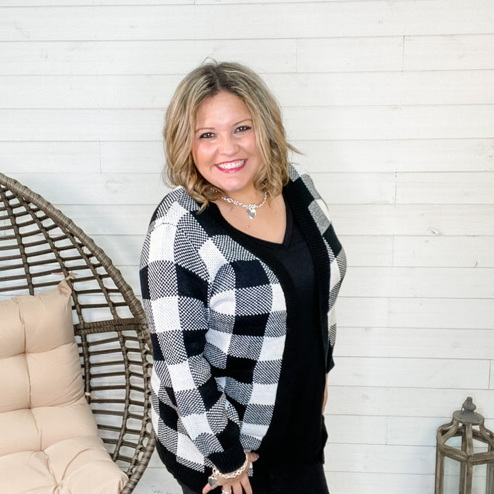 "Checked Out For The Weekend" Black & White Checkered Cardigan