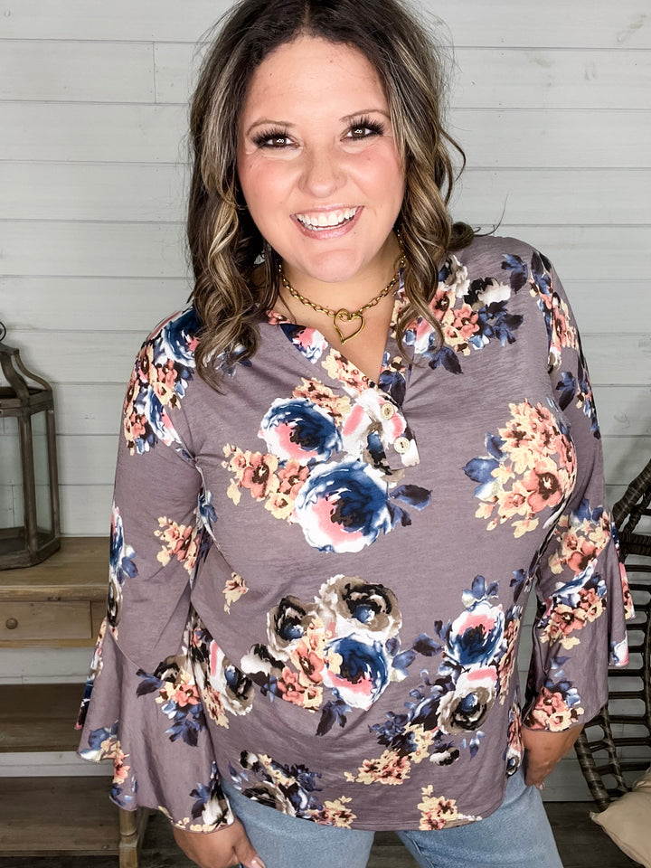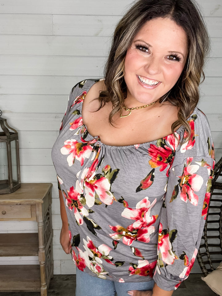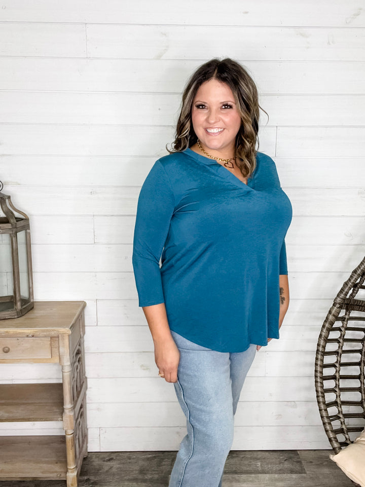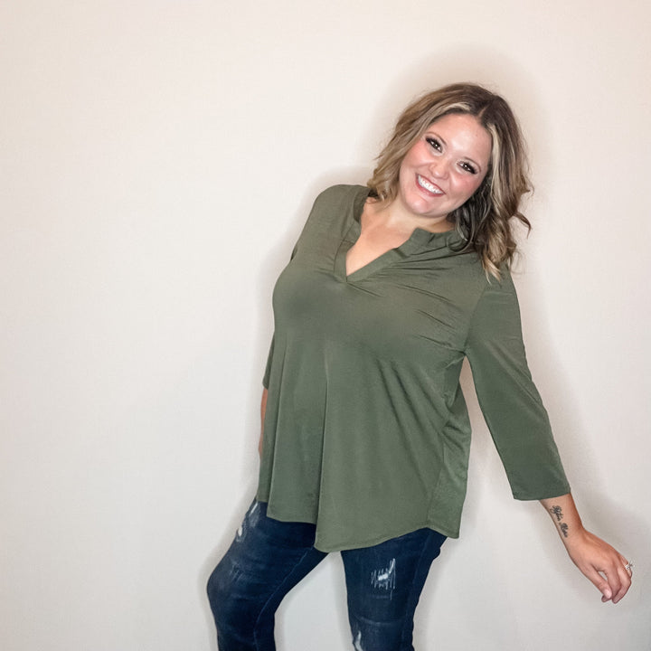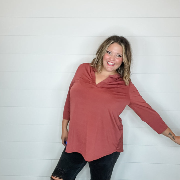 "Oh We Did" 3/4 Sleeve Split Neck (Gray)