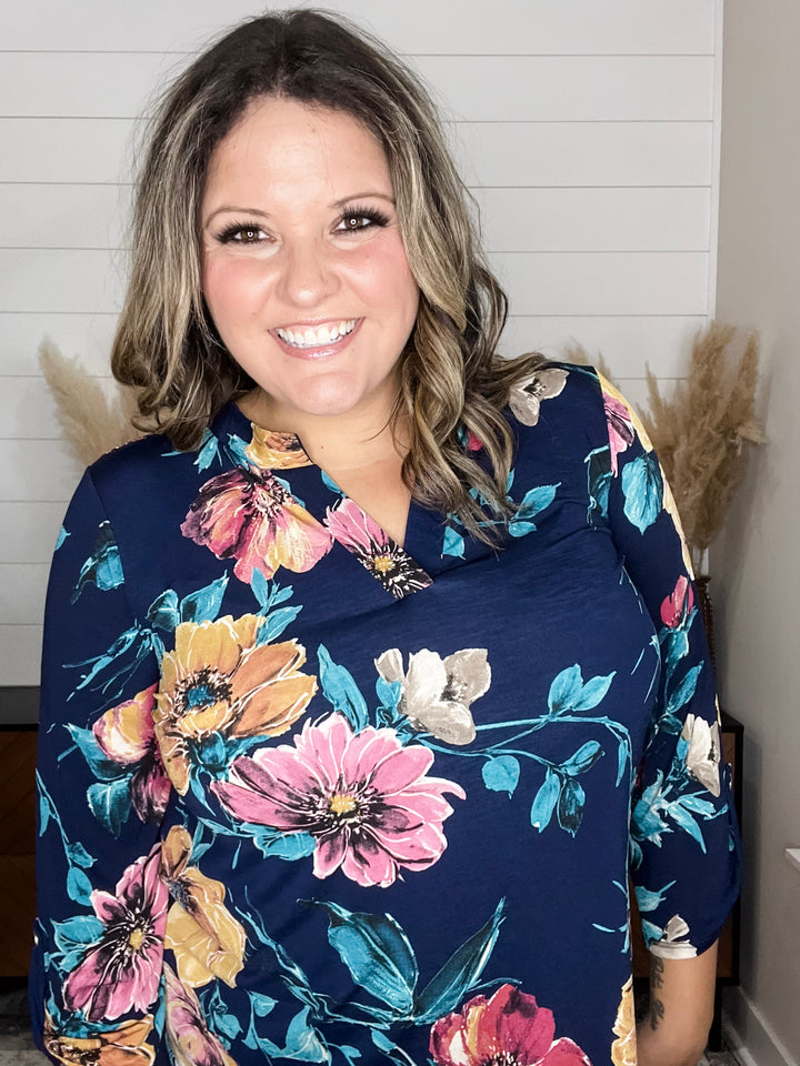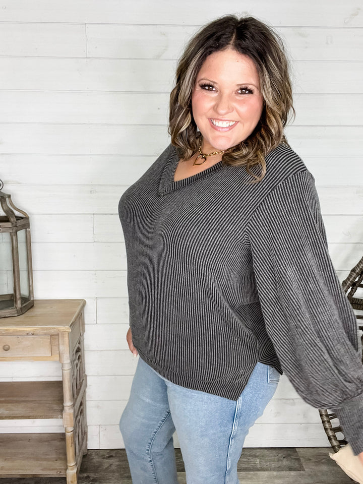 "Solid Ground" Lizzy 3/4 Sleeve Split Neck (Olive)