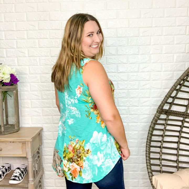 "Harper" Floral 3/4 Ruffle Sleeve Split Neck