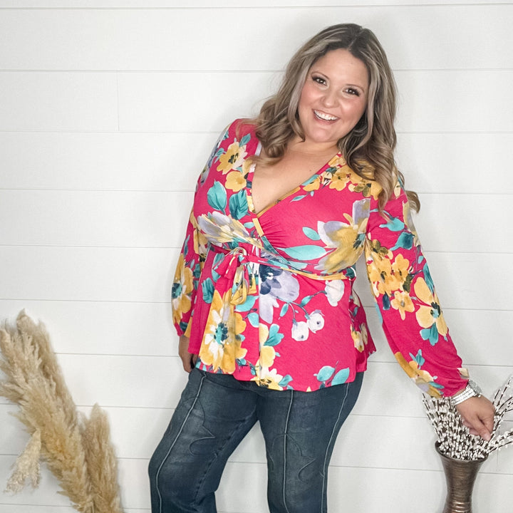 "Gamble" Long Sleeve Split Neck (Fuchsia)