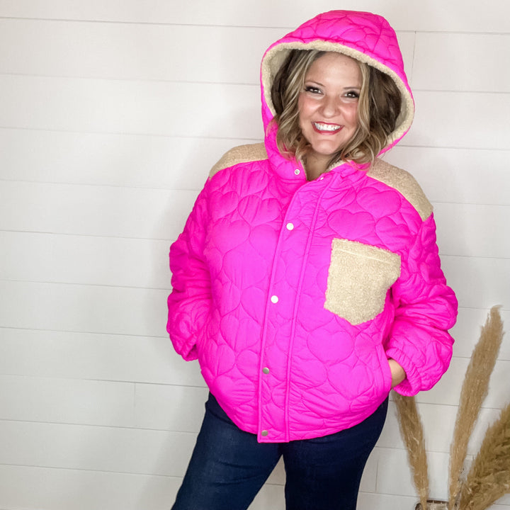 "I Heart You" Heart Quilted Jacket with Sherpa Details