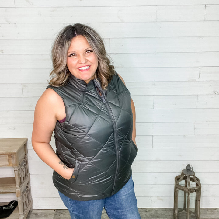 Diamond Quilted Zip Front Vest (Ash Grey)