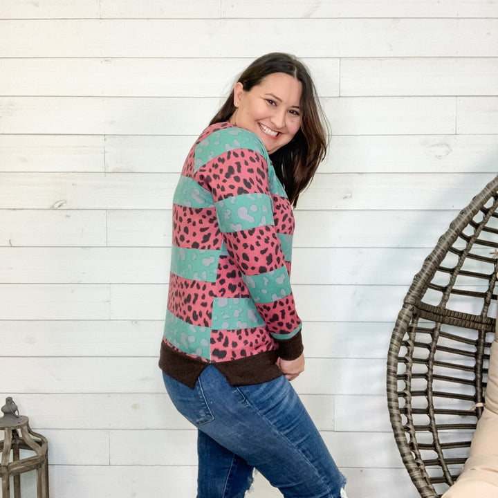 "Holly Jolly" Animal Print & Stripe Long Sleeve Weekender