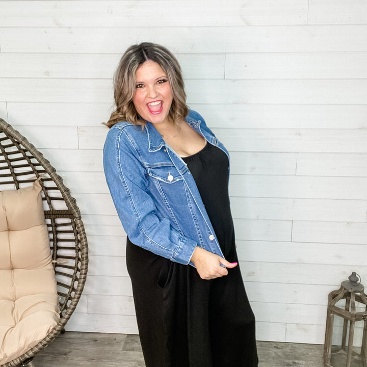 "Johnnie" Short Waisted Denim Jacket (Medium Blue)