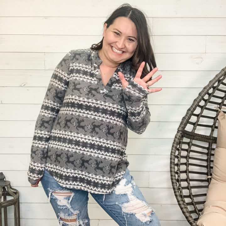 "North Pole" Gabby Style Long Sleeve Reindeer Detail