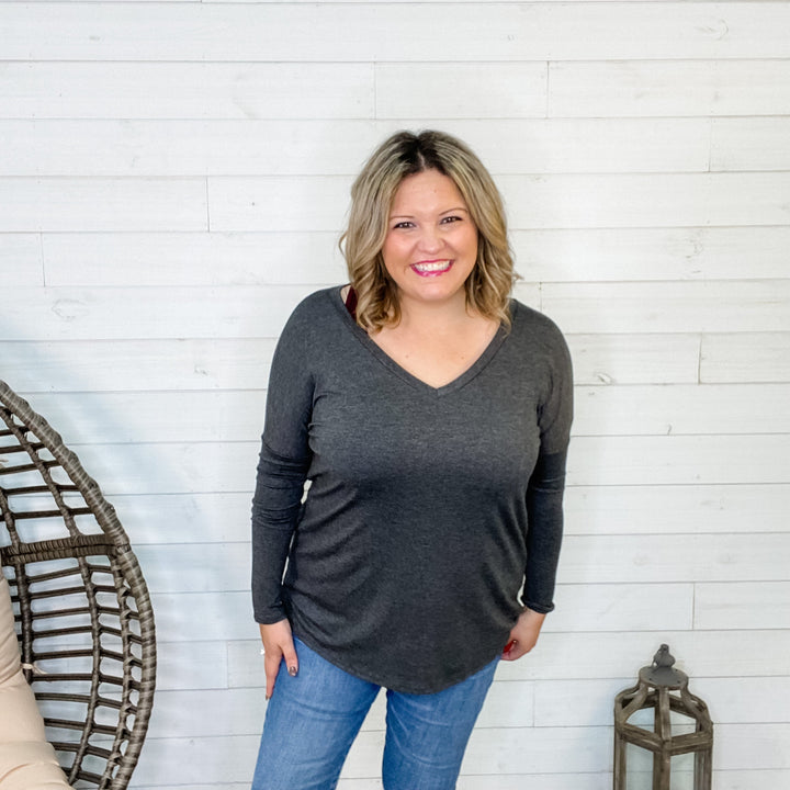"Ziggy" Long Sleeve V-Neck (Charcoal)