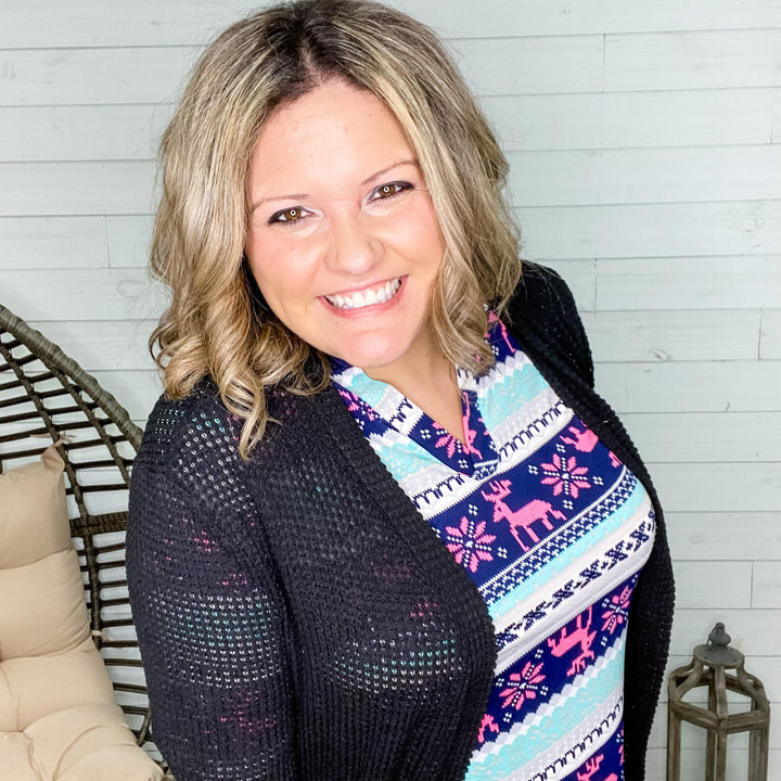 "Donner" Reindeer Pattern Cardigan with Side Pockets