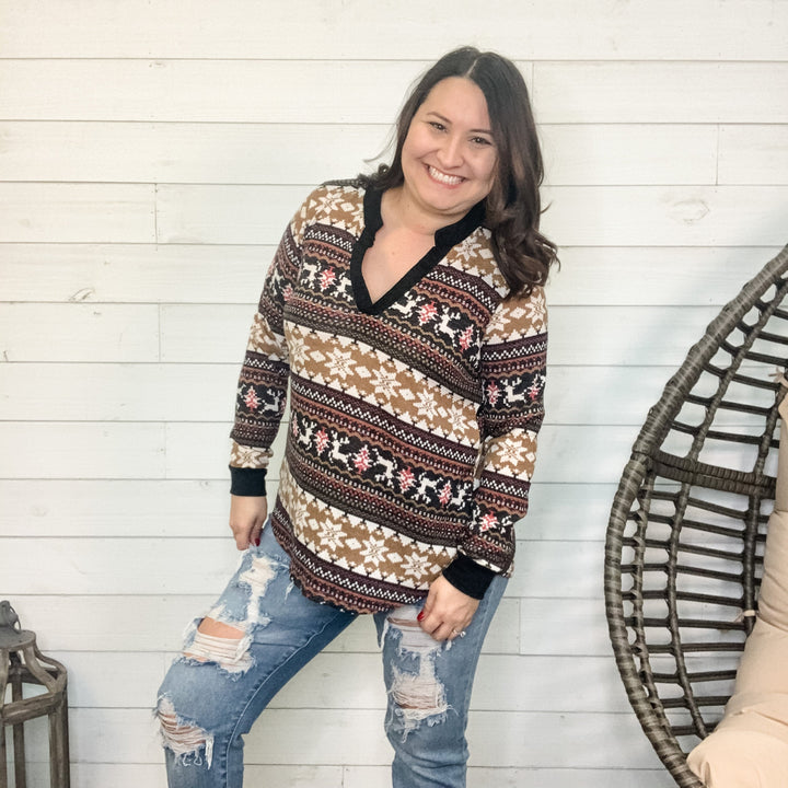 "Sleigh Ride" Henley Style with Reindeer & Snowflake Detail