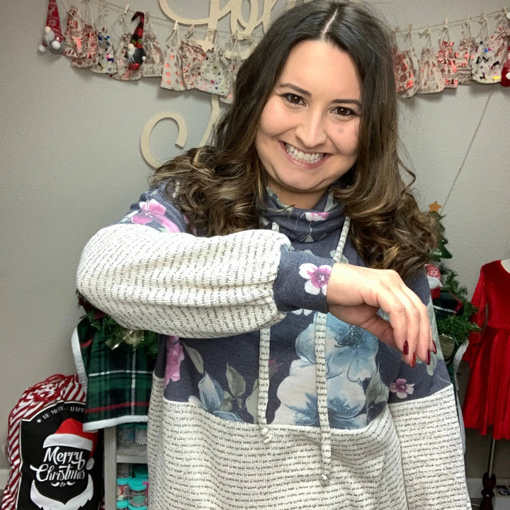 "Sweet Magnolia " Long Floral Sleeve Solid Body Top