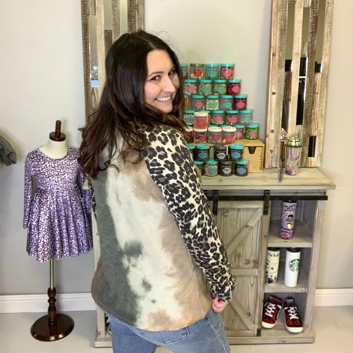 "Cat Scratch Fever" Tie Dye & Animal Accent Long Sleeve