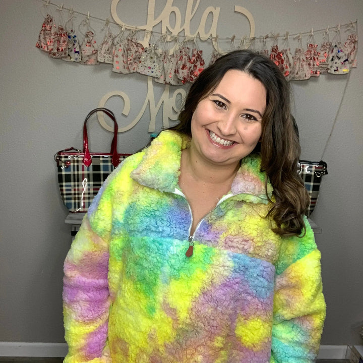 "Drama LLama" Tie Dye Half Zip Sherpa Pull Over