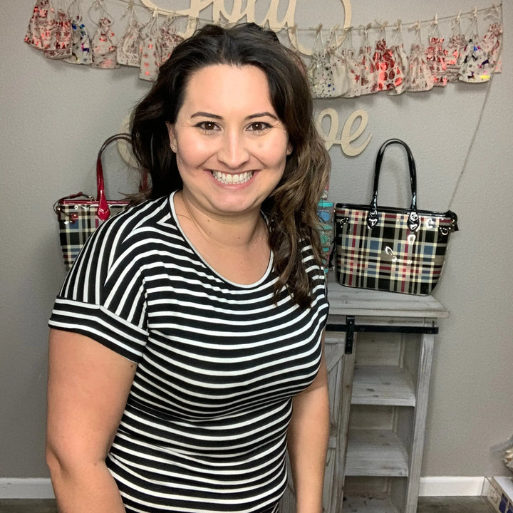 "Pinetop" Plaid Lizzy 3/4 Sleeve Split Neck