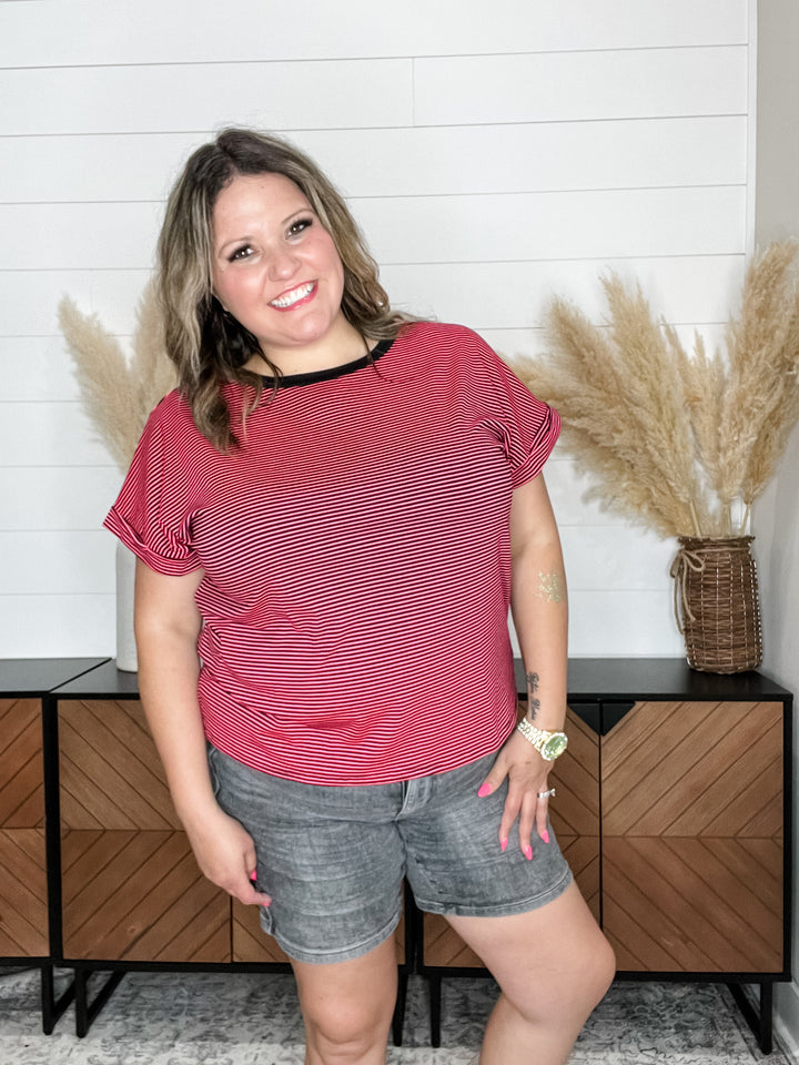 SAVE 35%"Jaden" Striped Boxy Cuff Sleeve
