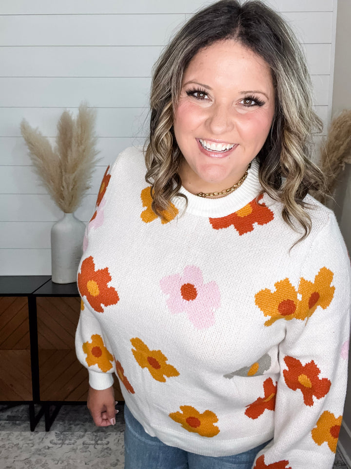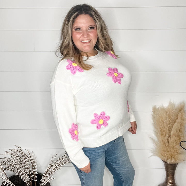 "Call Me Old Fashion" Crochet Flower Detail Sweater