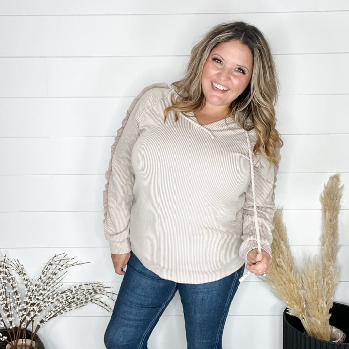 "Get It Right" Hooded Corded Pull Over (Oatmeal)
