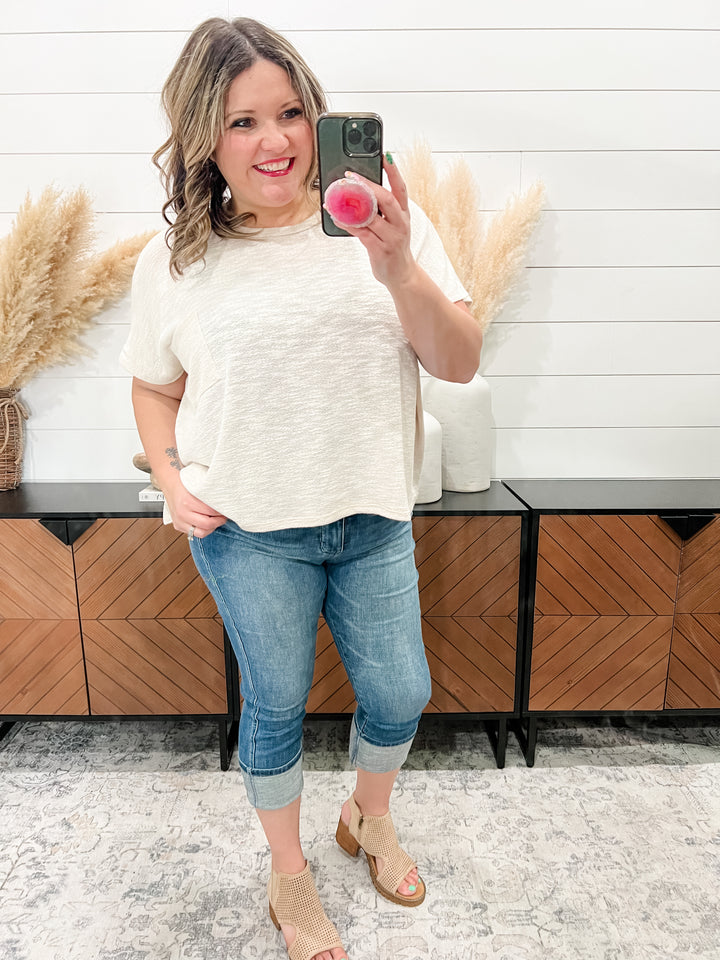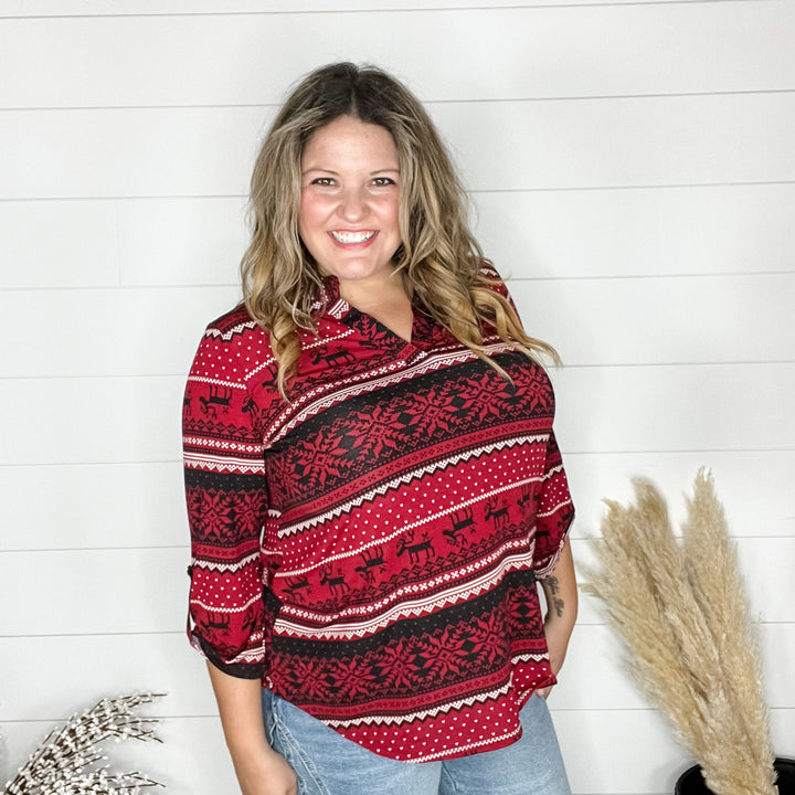 "Jingle" 3/4 Sleeve Split Neck Tops