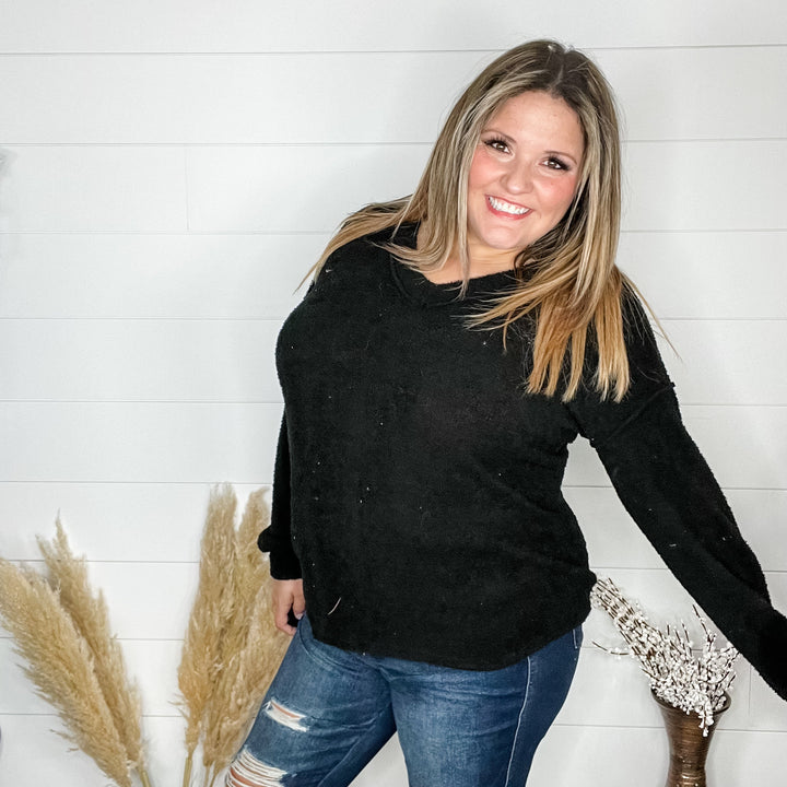 "What Can You Say" 3/4 Sleeve Split Neck (Black)