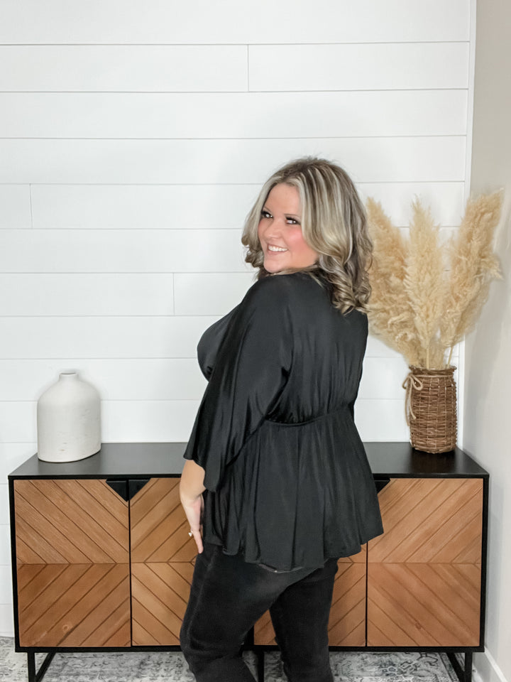 "Your Best Shot" Floral 3/4 Sleeve Split Neck (Black)
