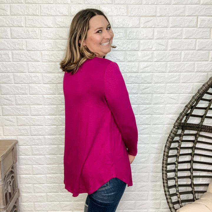 "Solid Ground" Lizzy 3/4 Sleeve Split Neck (Hunter Green)