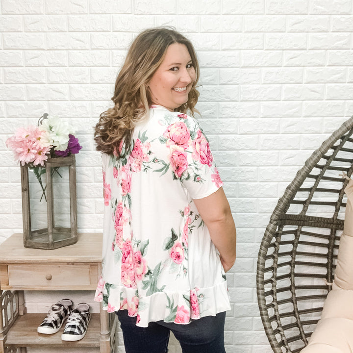 SAVE 40%"Hope" Floral Ruffle Bottom V-Neck