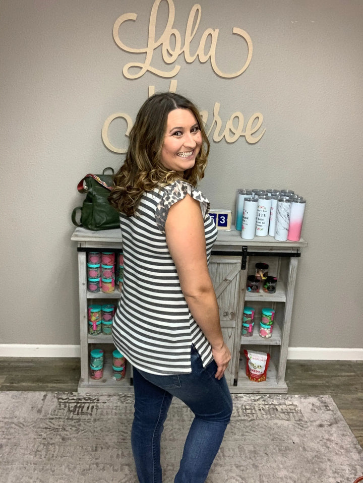 Ruffled Shoulder Stripe Tank with Animal Accent