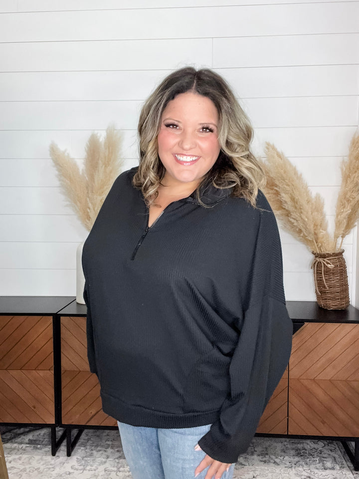 "Brinkley" 3/4 Sleeve Split Neck (Black)