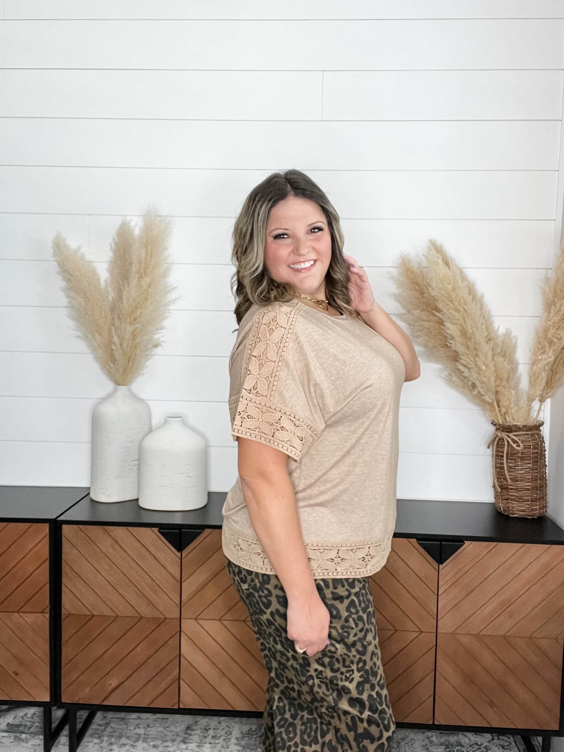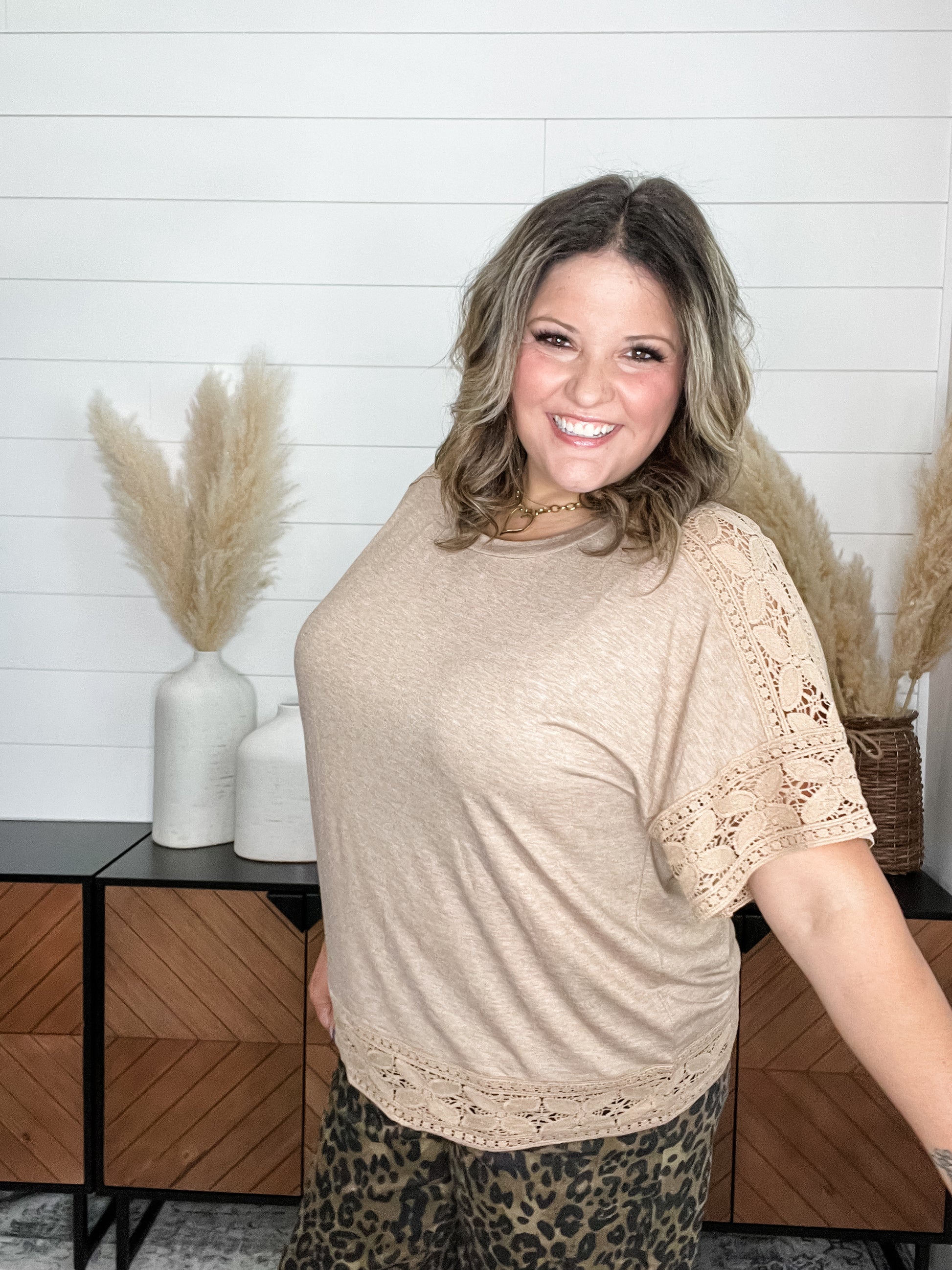 Discover the perfect blend of comfort and style with our "Almost" Short Sleeve Boxy Tee. Made of lightweight fabric, this casual piece showcases a touch of femininity with its subtle crochet lace trim detail. Perfect for everyday wear, it's the ideal addition to any fashion-forward wardrobe.