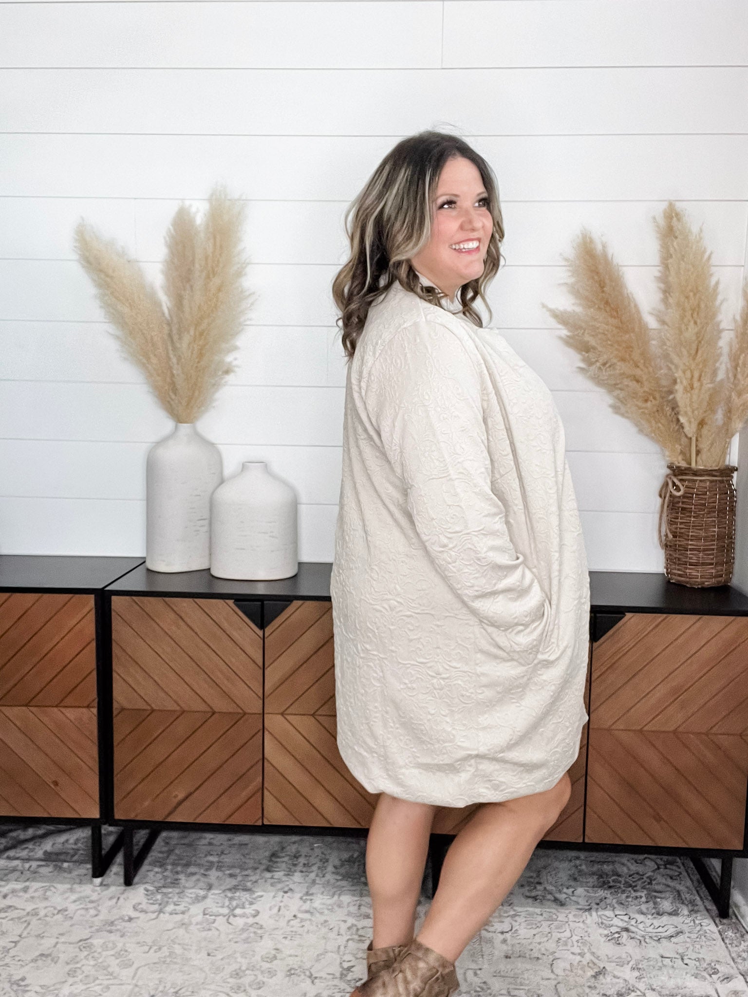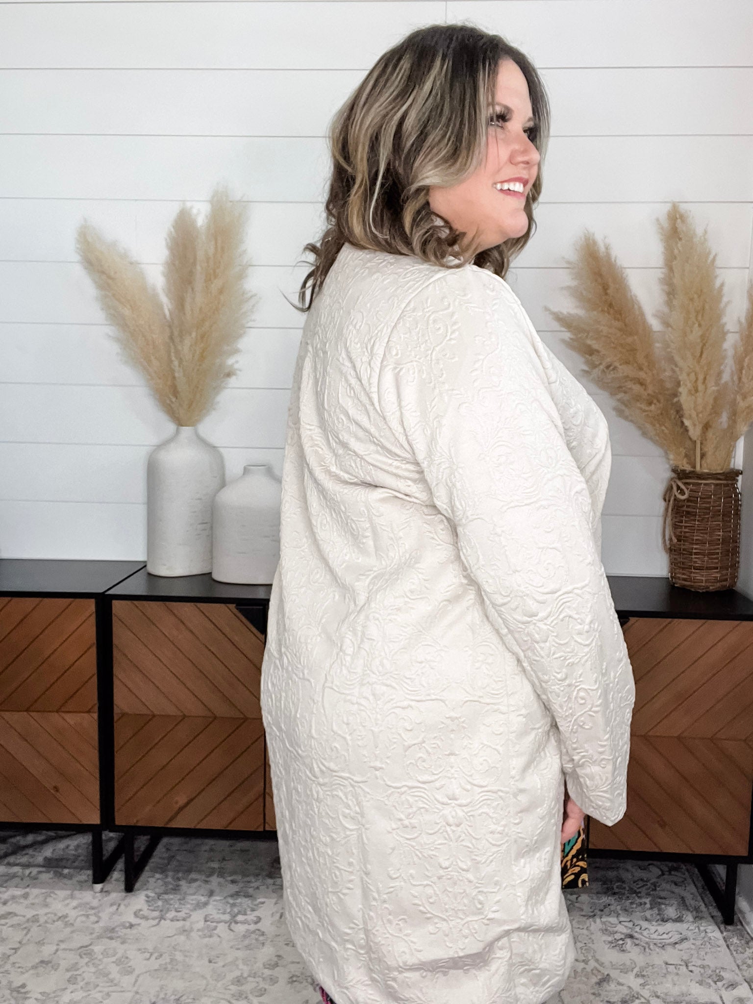 "Amara" Jacquard Midi Coat with Pockets (Oatmeal)