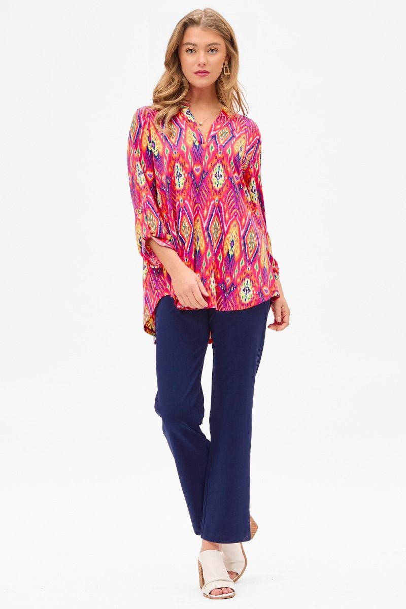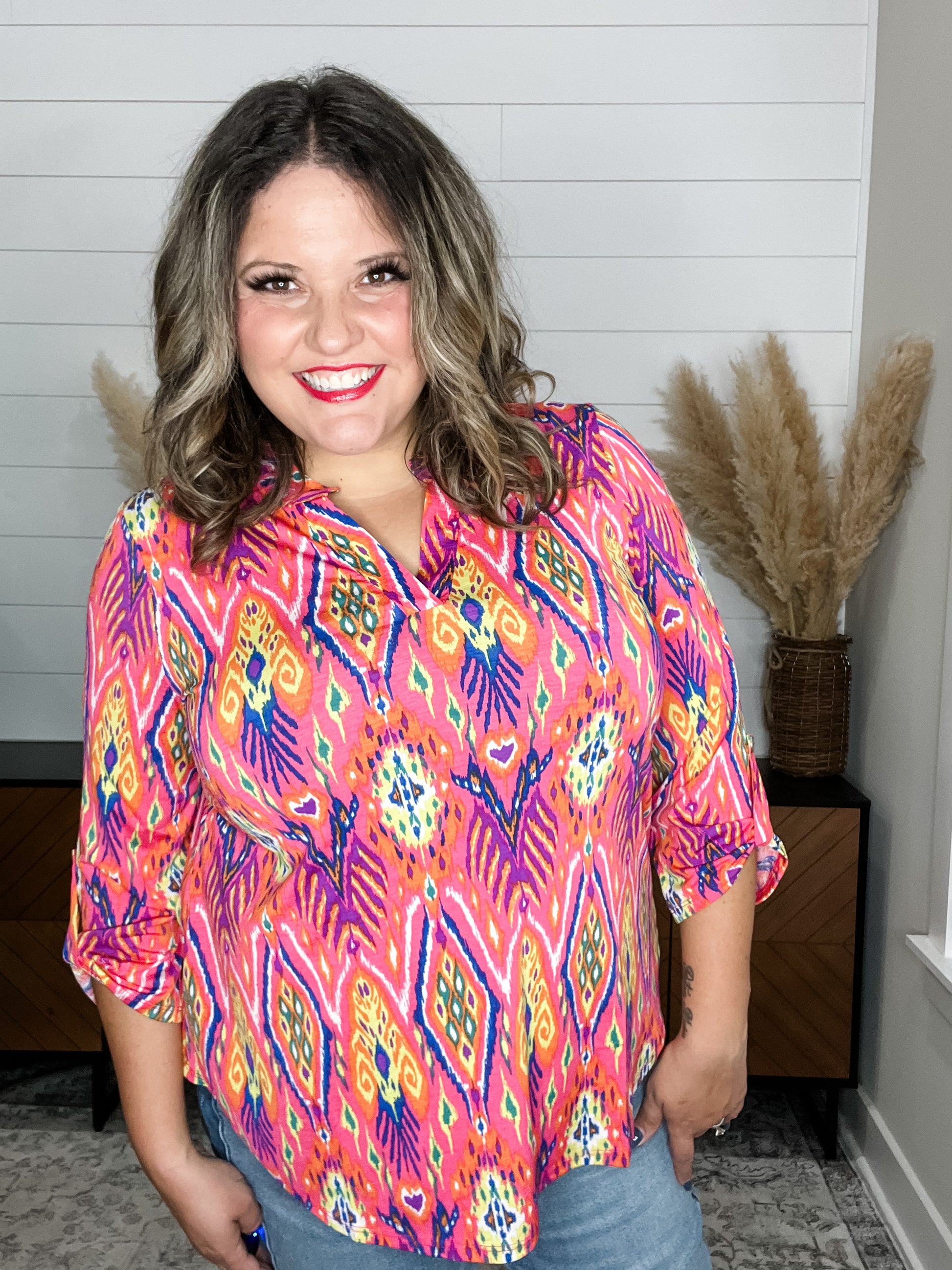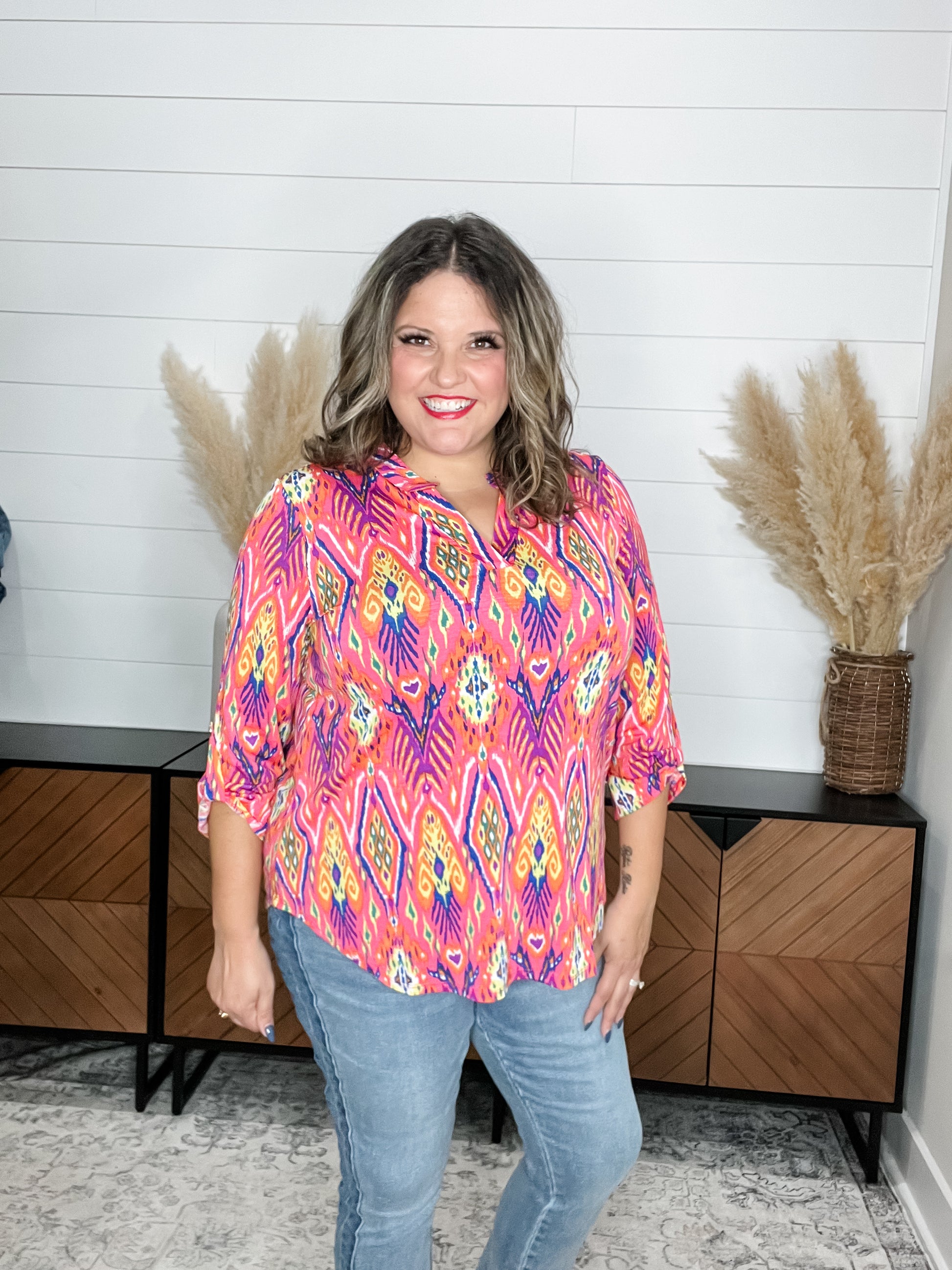 Get ready to turn heads in the "Amberjack" 3/4 Sleeve Split Neck! This playful top features slinky, stretchy fabric that hugs your curves just right—so be sure to size down one for the perfect fit. With bold colors that pop, it’s your new go-to for effortless style and fun vibes all day long.