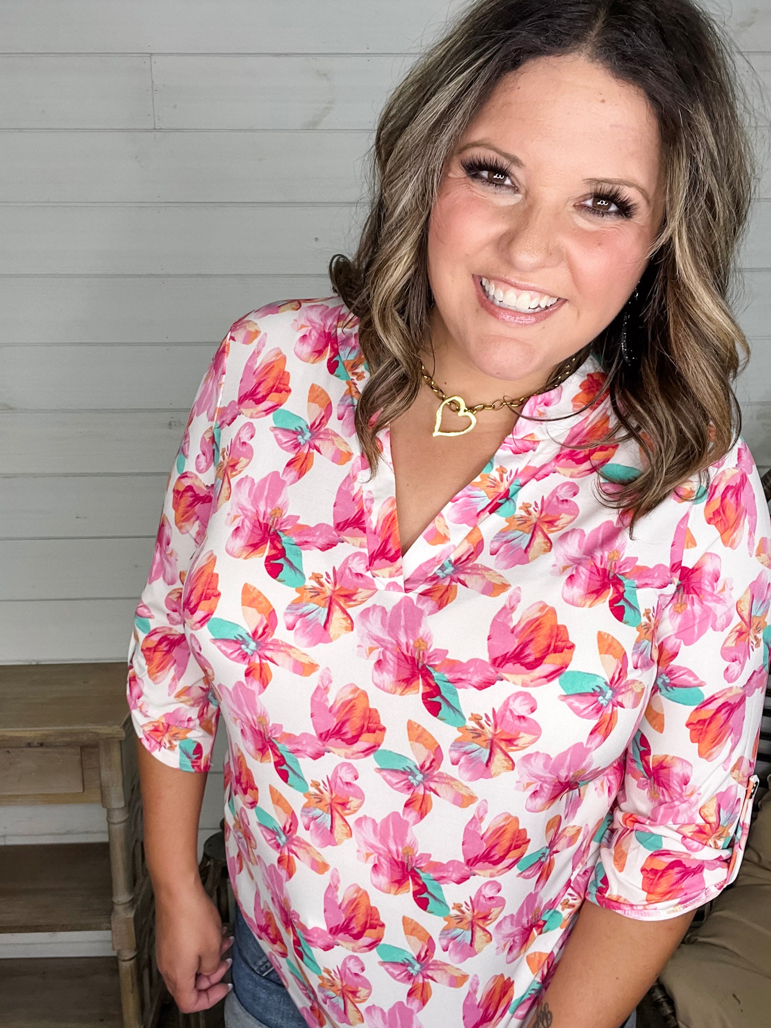 Step into spring with the "Blink Of An Eye" Floral Lizzy top! This playful pink blouse features charming 3/4 sleeves and a flirty split neck, designed to fit true to size for effortless style. Perfect for brightening your day with a splash of floral fun.