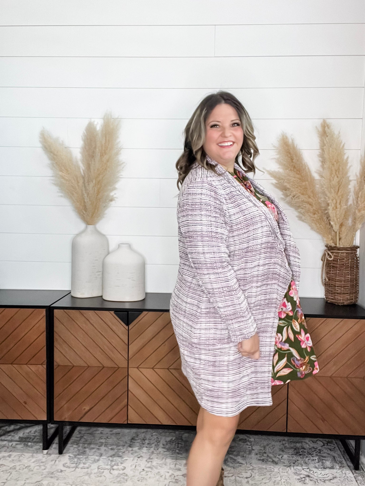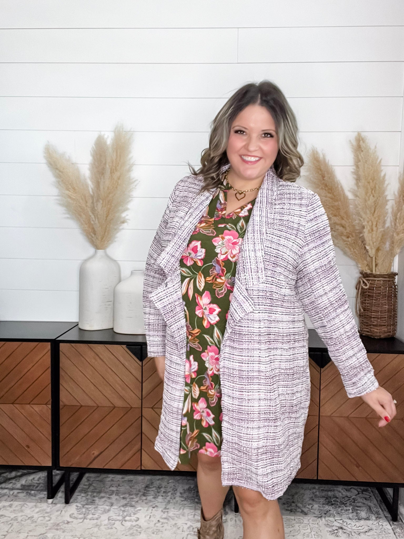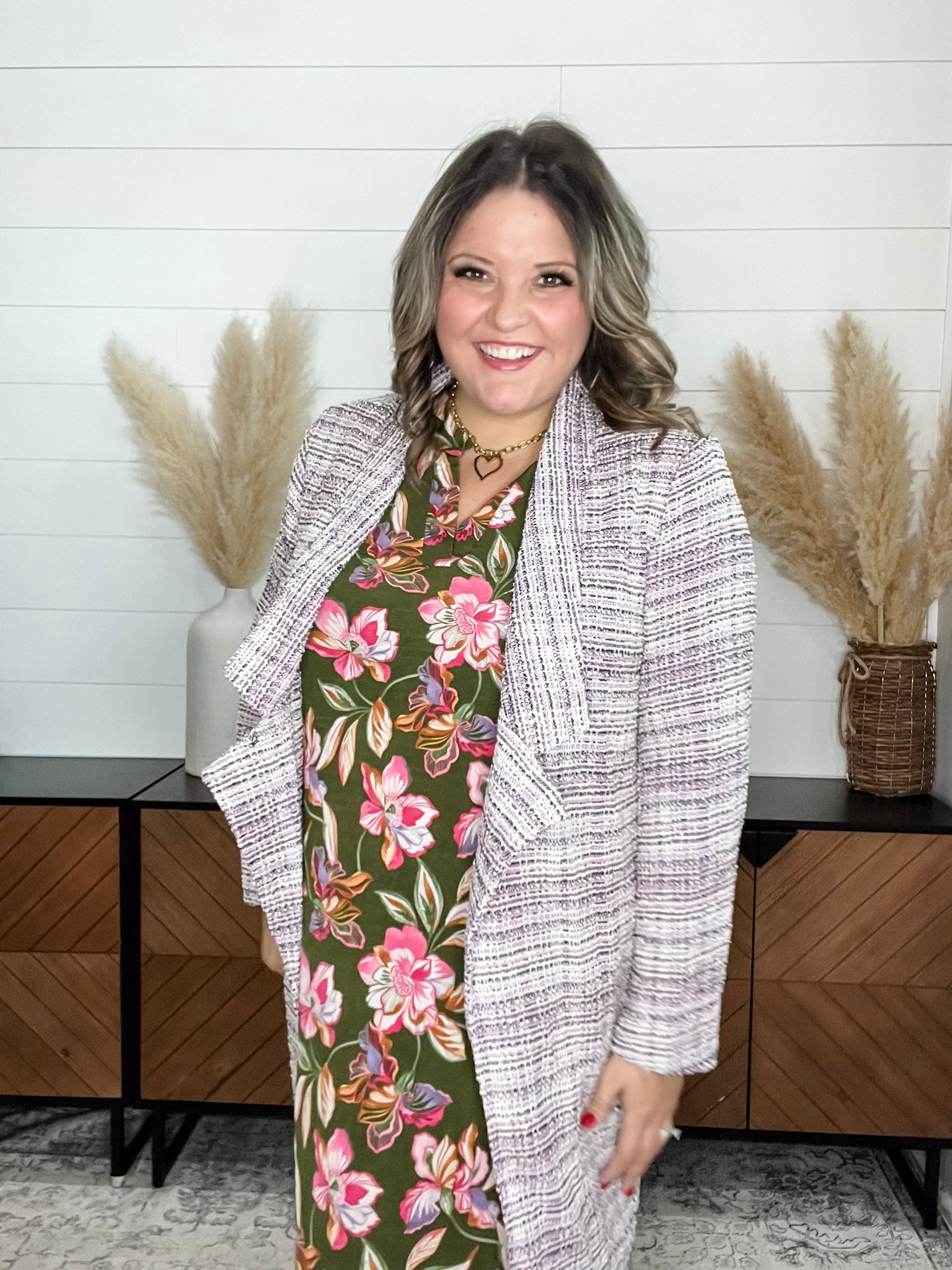 "Brixton" Tweed Open Front Blazer (Lavender/Ivory)