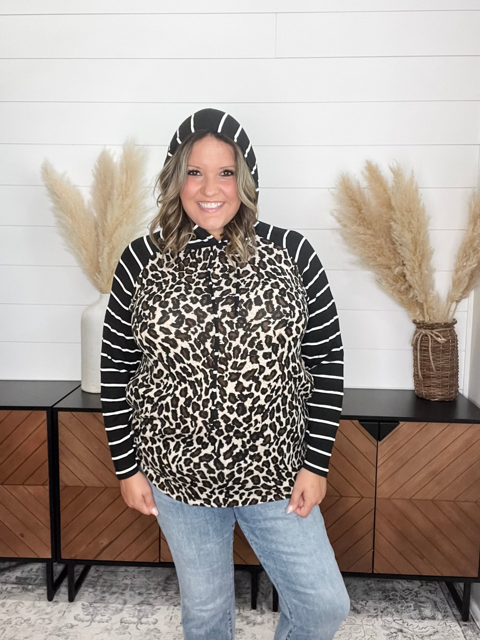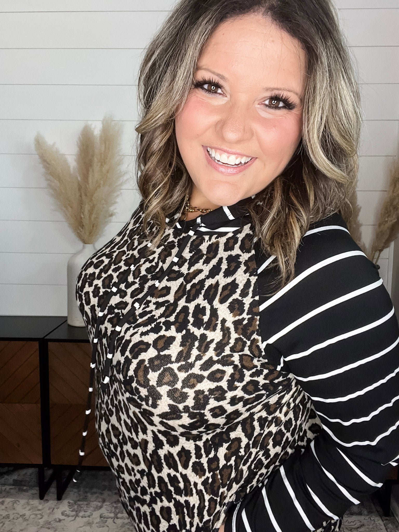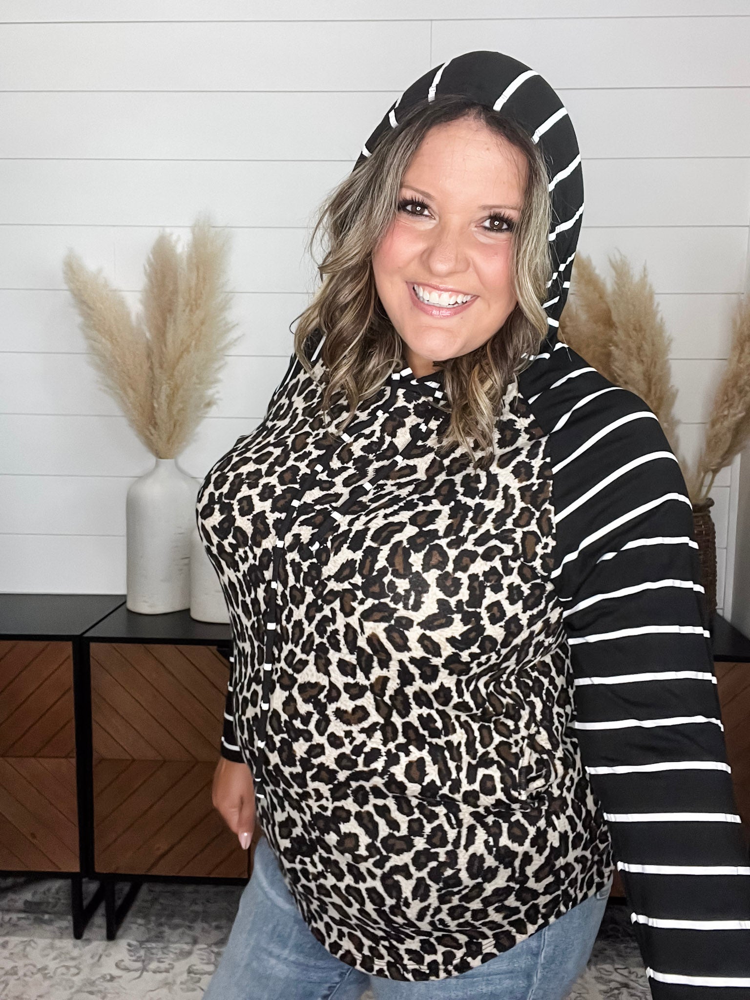 Embrace your wild side with the "Caged" Animal Print Hoodie, featuring a bold stripe accent for extra flair. Designed to fit true to size, this playful hoodie combines comfort and style effortlessly—perfect for adding a fierce touch to your casual look.