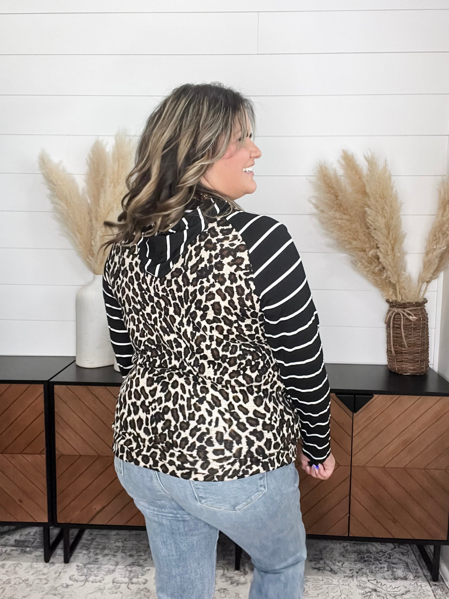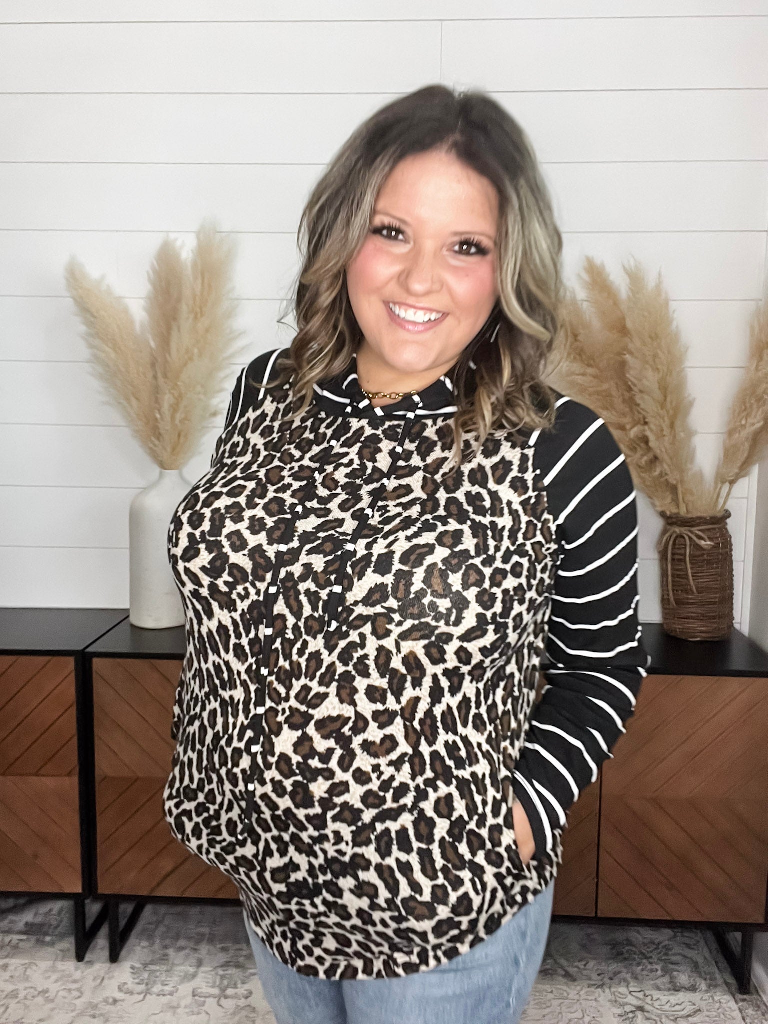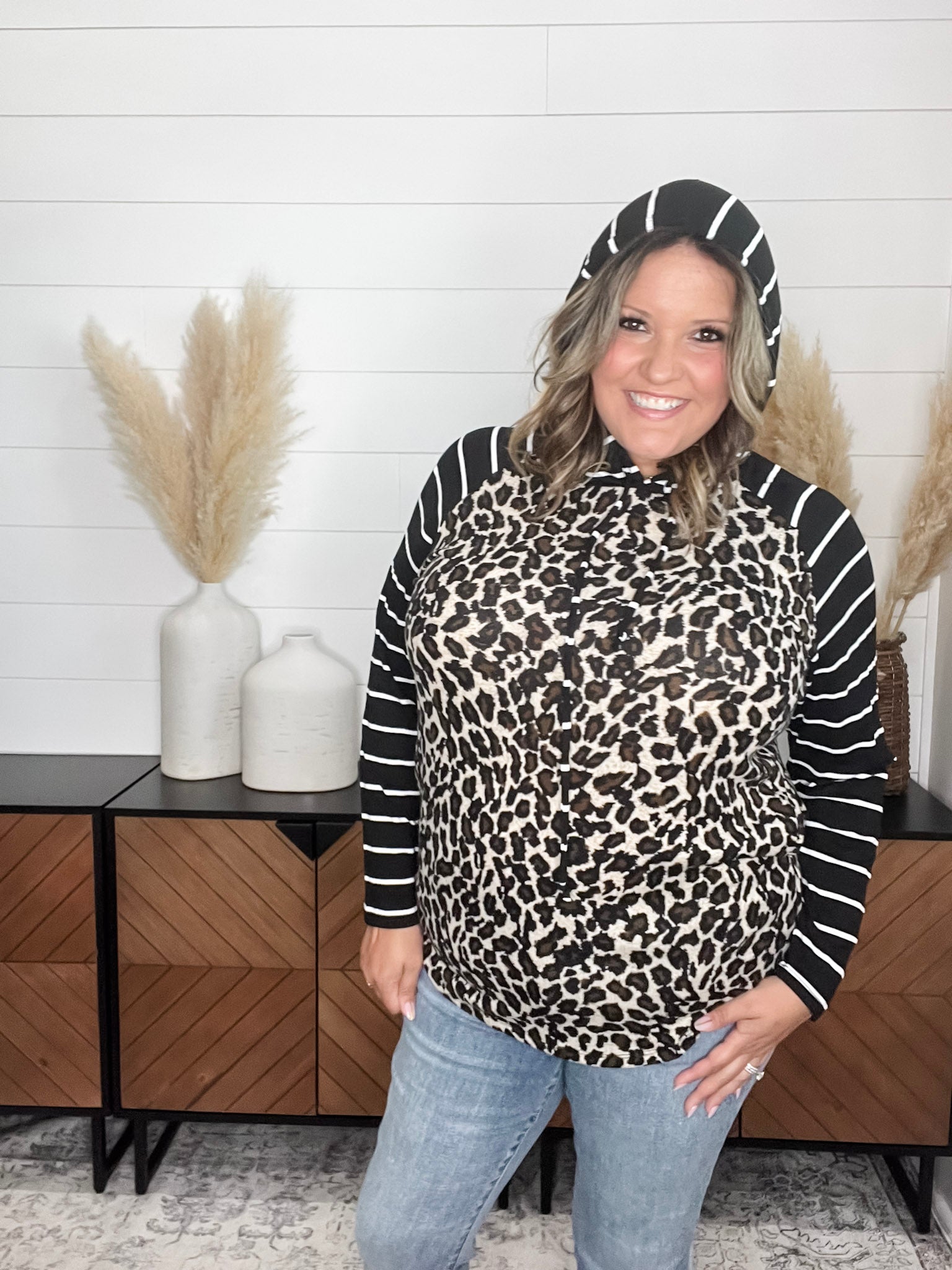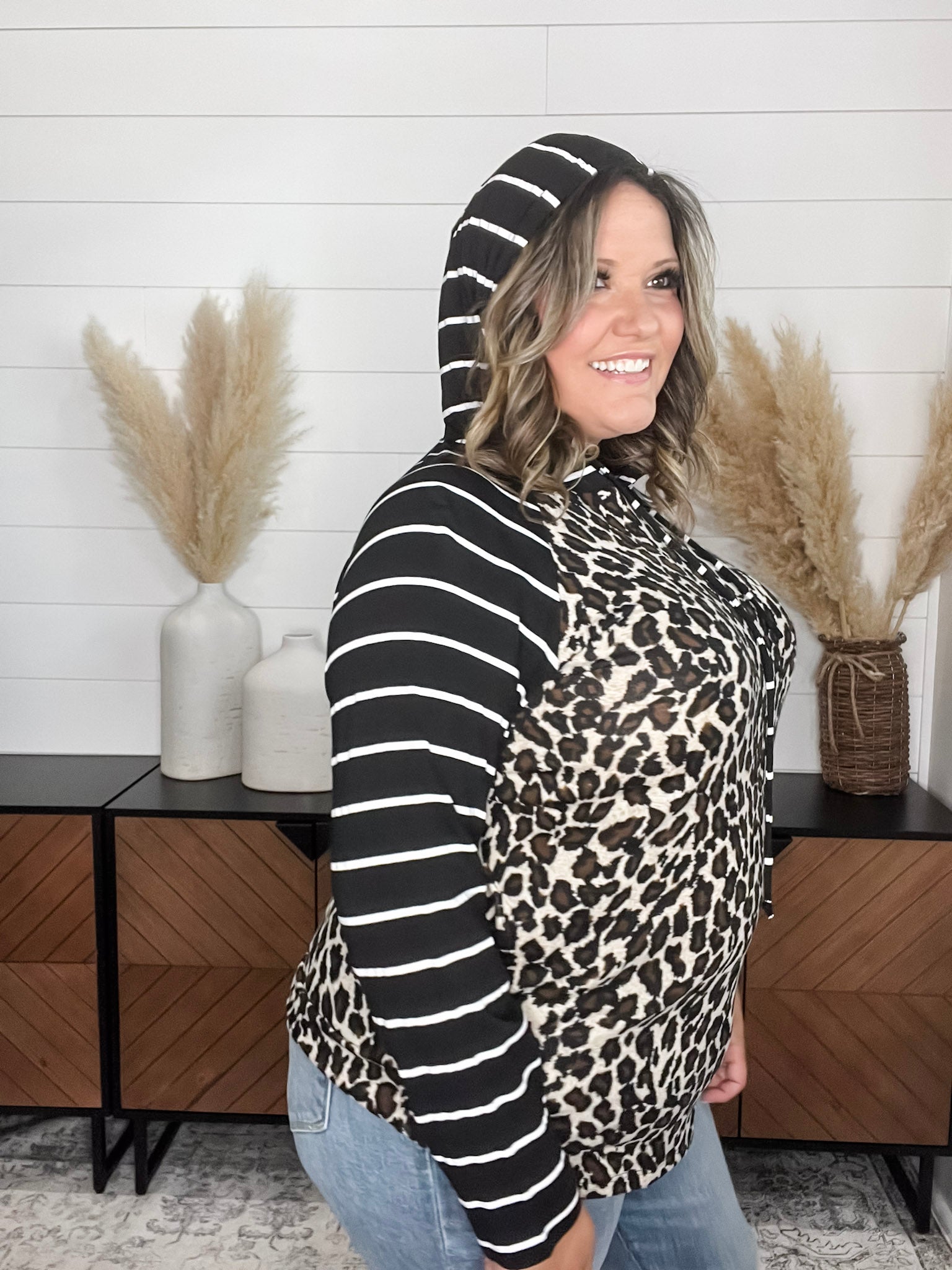 Embrace your wild side with the "Caged" Animal Print Hoodie, featuring a bold stripe accent for extra flair. Designed to fit true to size, this playful hoodie combines comfort and style effortlessly—perfect for adding a fierce touch to your casual look.