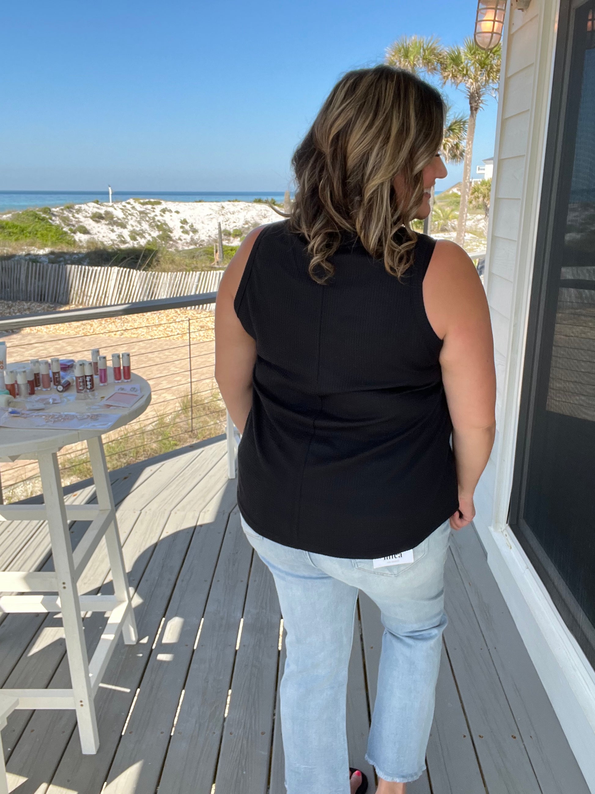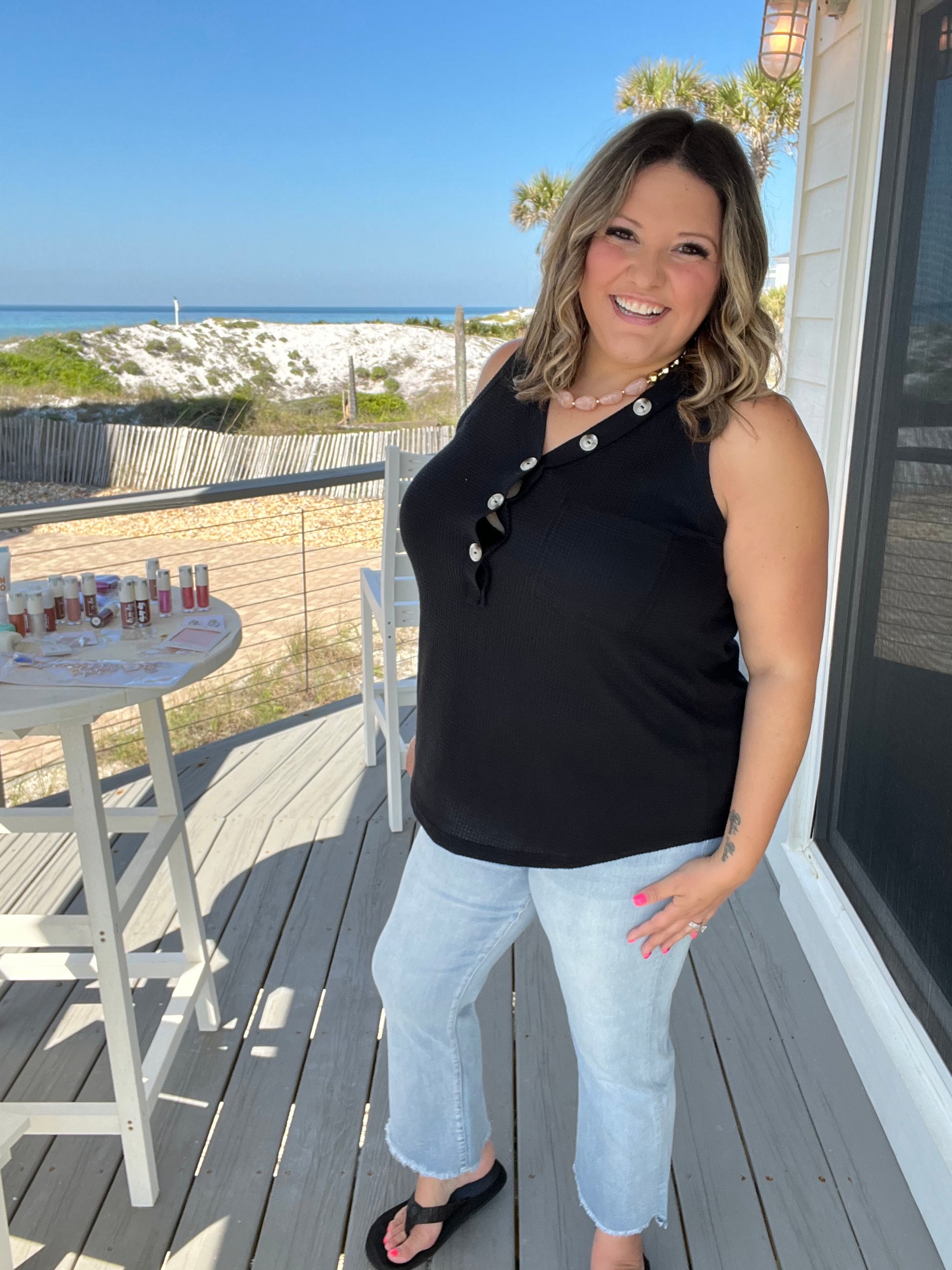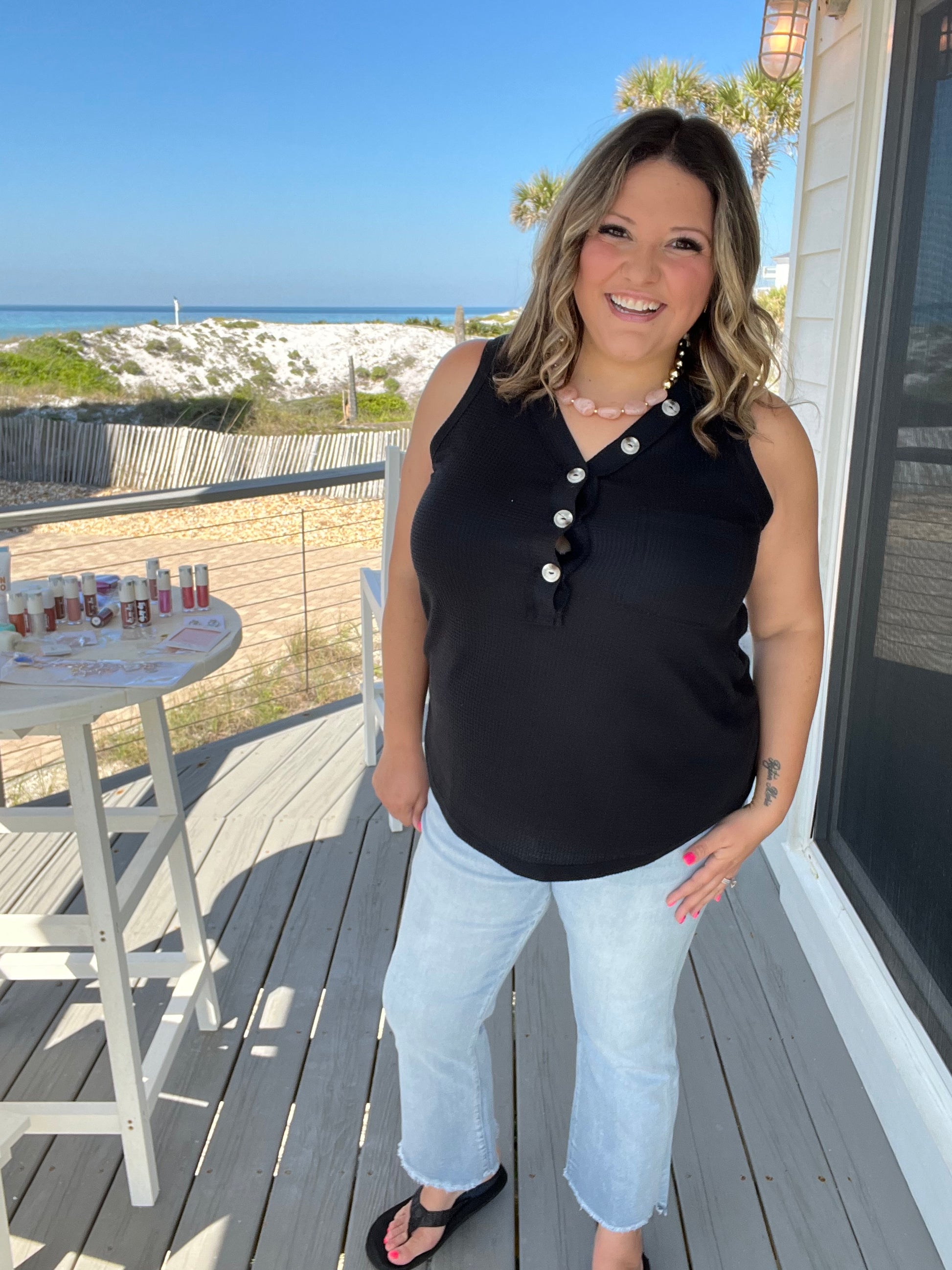 "Caldwell" Waffle Texture Tank with Chest Pockets and Faux Buttons (Black)