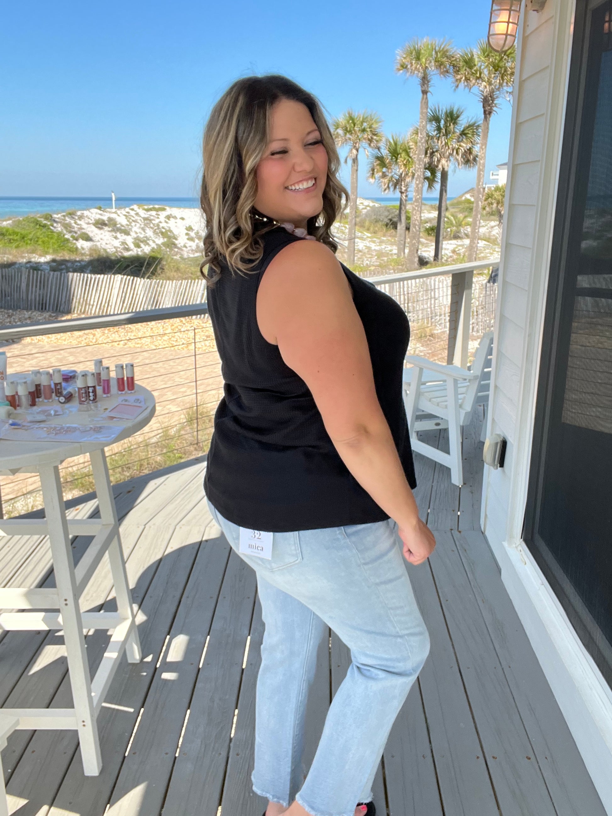 Elevate your style with our "Caldwell" Waffle Texture Tank. Made with a super soft and stretchy waffle knit, this sleeveless tank features a flattering v-neck and faux button details. For those with a larger bust, simply size up or wear a layered tank for a smooth, buttoned look. Expertly designed for a comfortable and stylish fit.