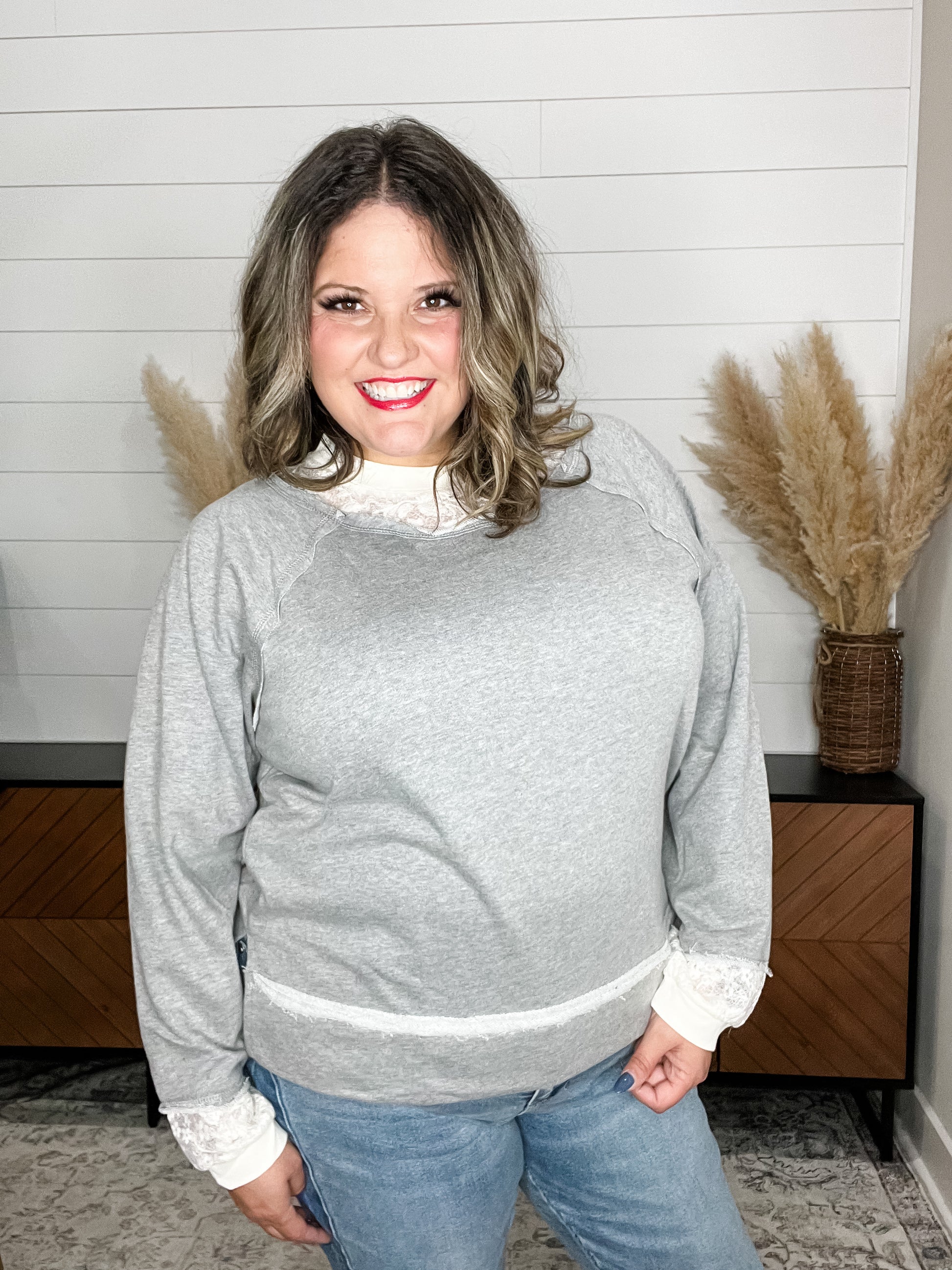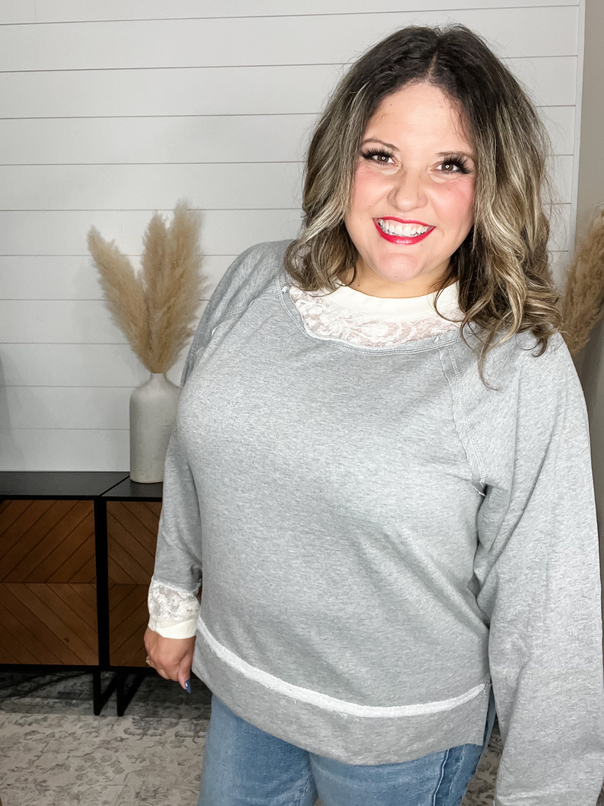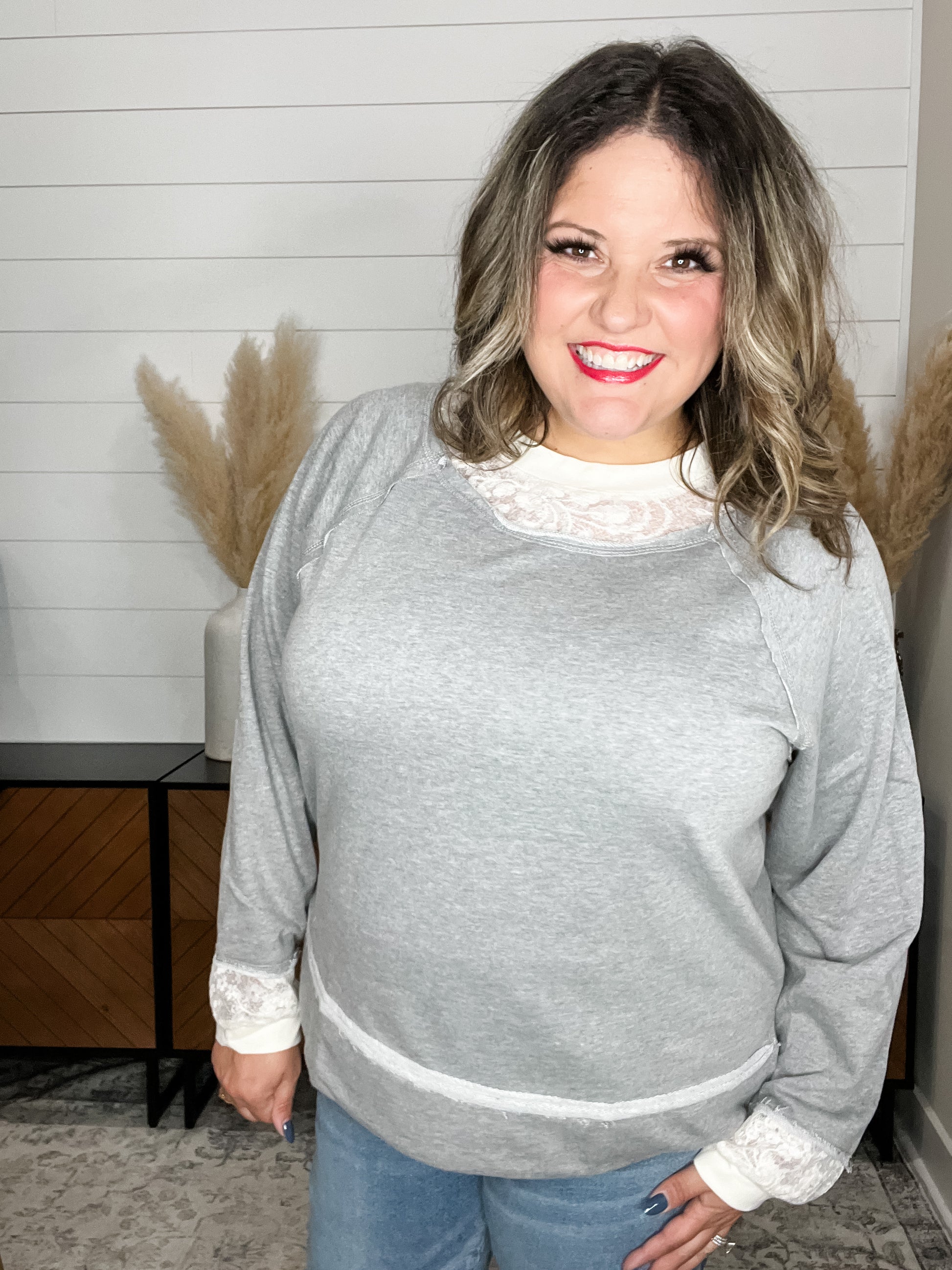Add a dash of vintage flair to your wardrobe with the "Class it Up" Crewneck. This long-sleeve top features charming lace details that bring a playful, feminine touch to your everyday style. Cozy yet chic, it’s perfect for those who want to mix comfort with a hint of old-school elegance.
