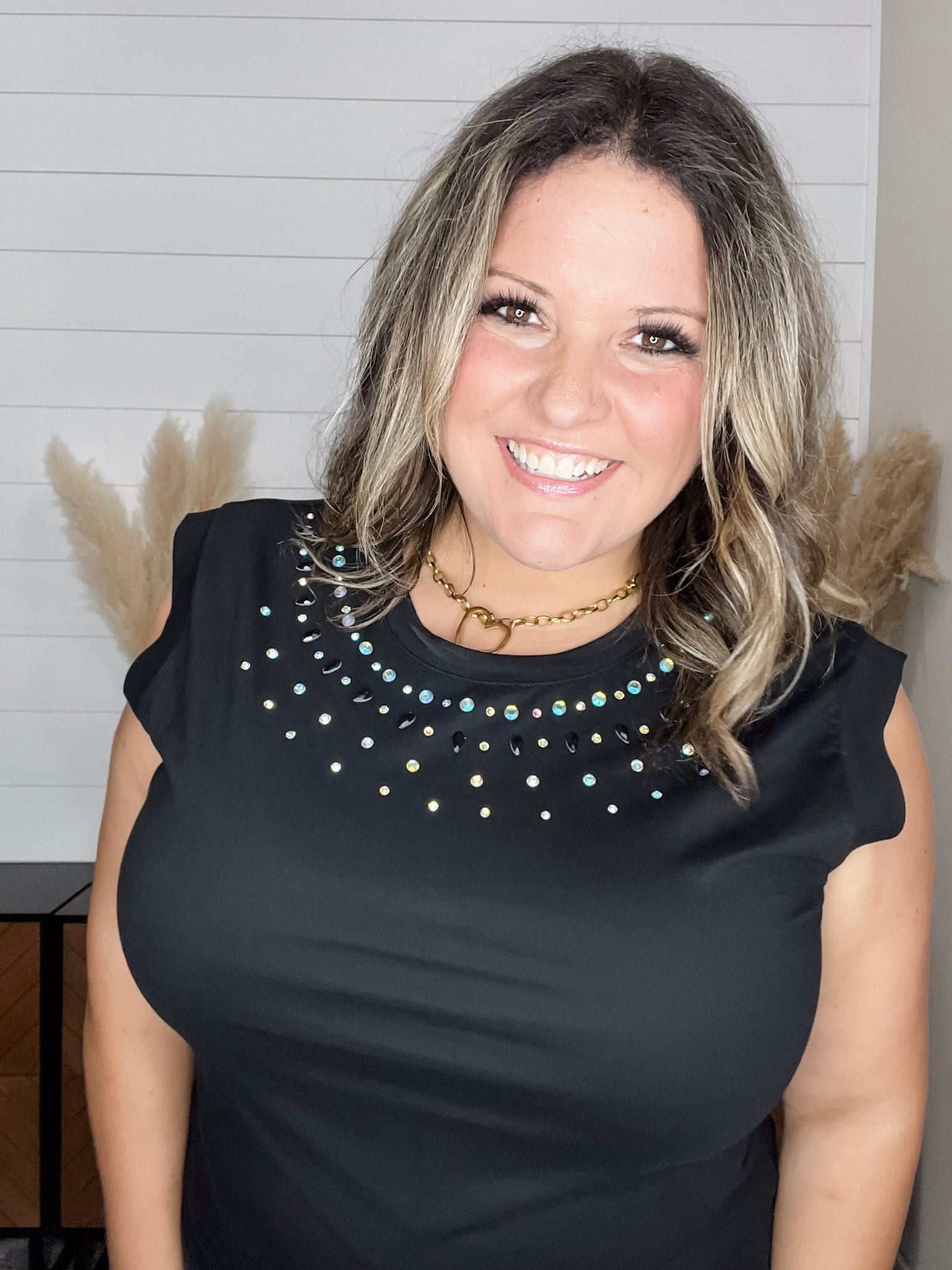 Elevate your casual style with our "Classy Sassy" Embellished Tank Top! This white birch cotton top features a high neckline adorned with eye-catching clear and black rhinestones. The cropped, fitted silhouette hugs your curves just right—no stretch means it keeps its shape all day. True to size and totally fabulous, this tank adds just the right amount of sparkle to your everyday look!