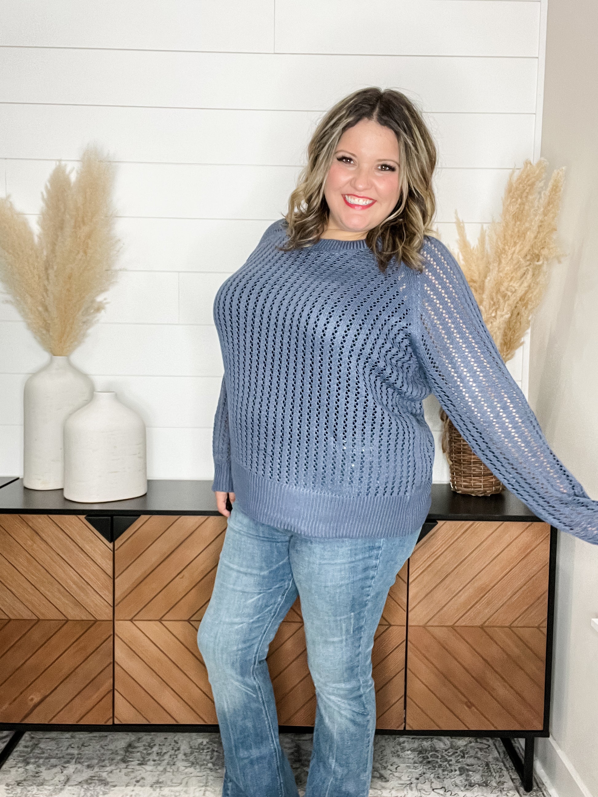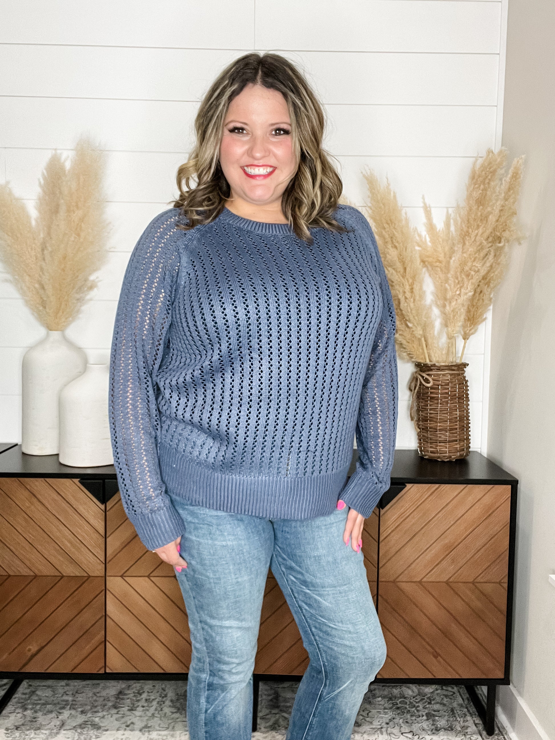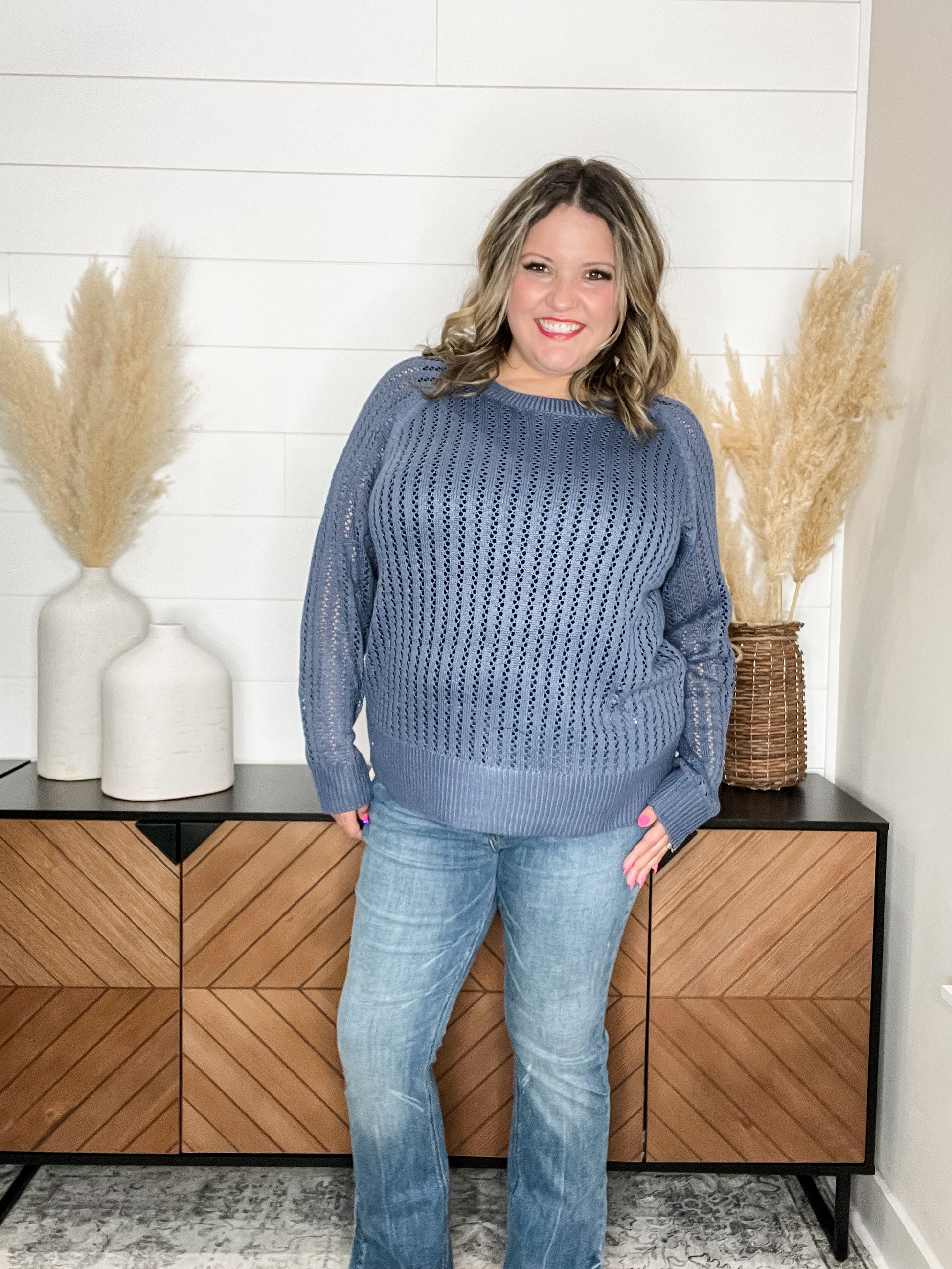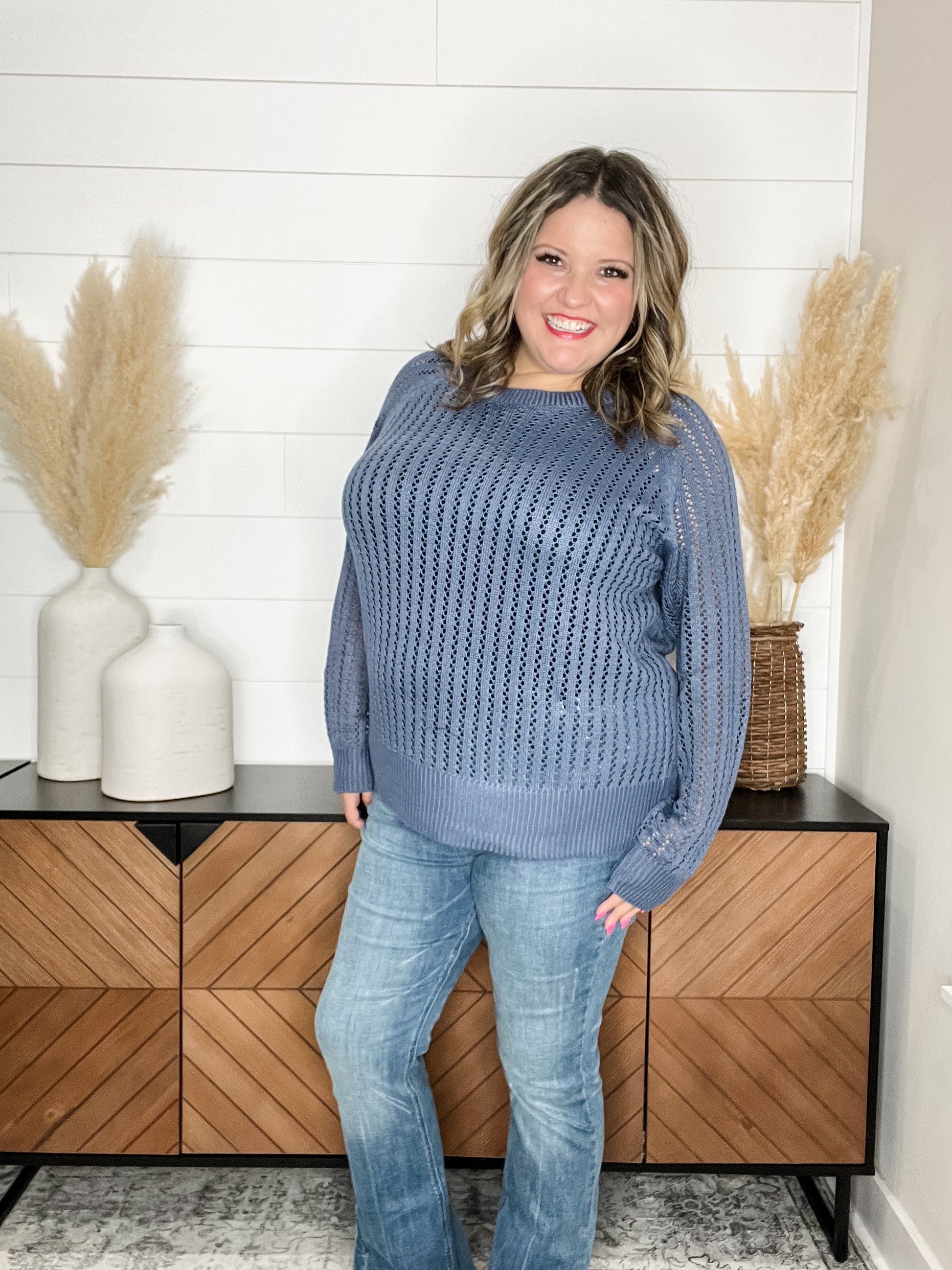 "Cut the Chill" Long Sleeve Lighweight Sweater (Denim)