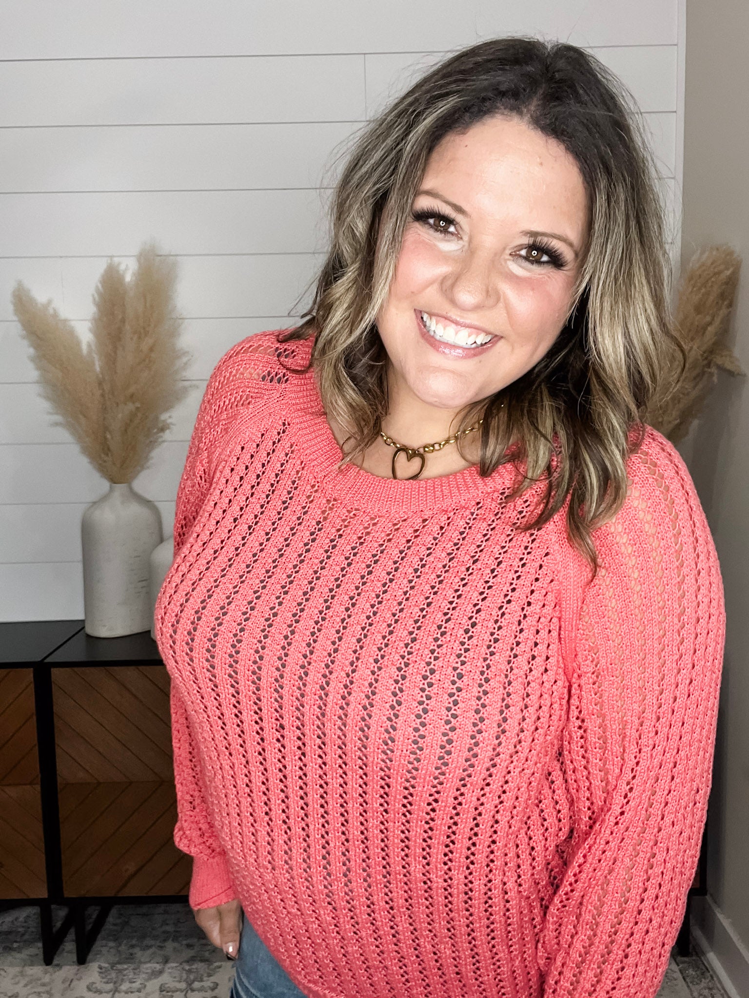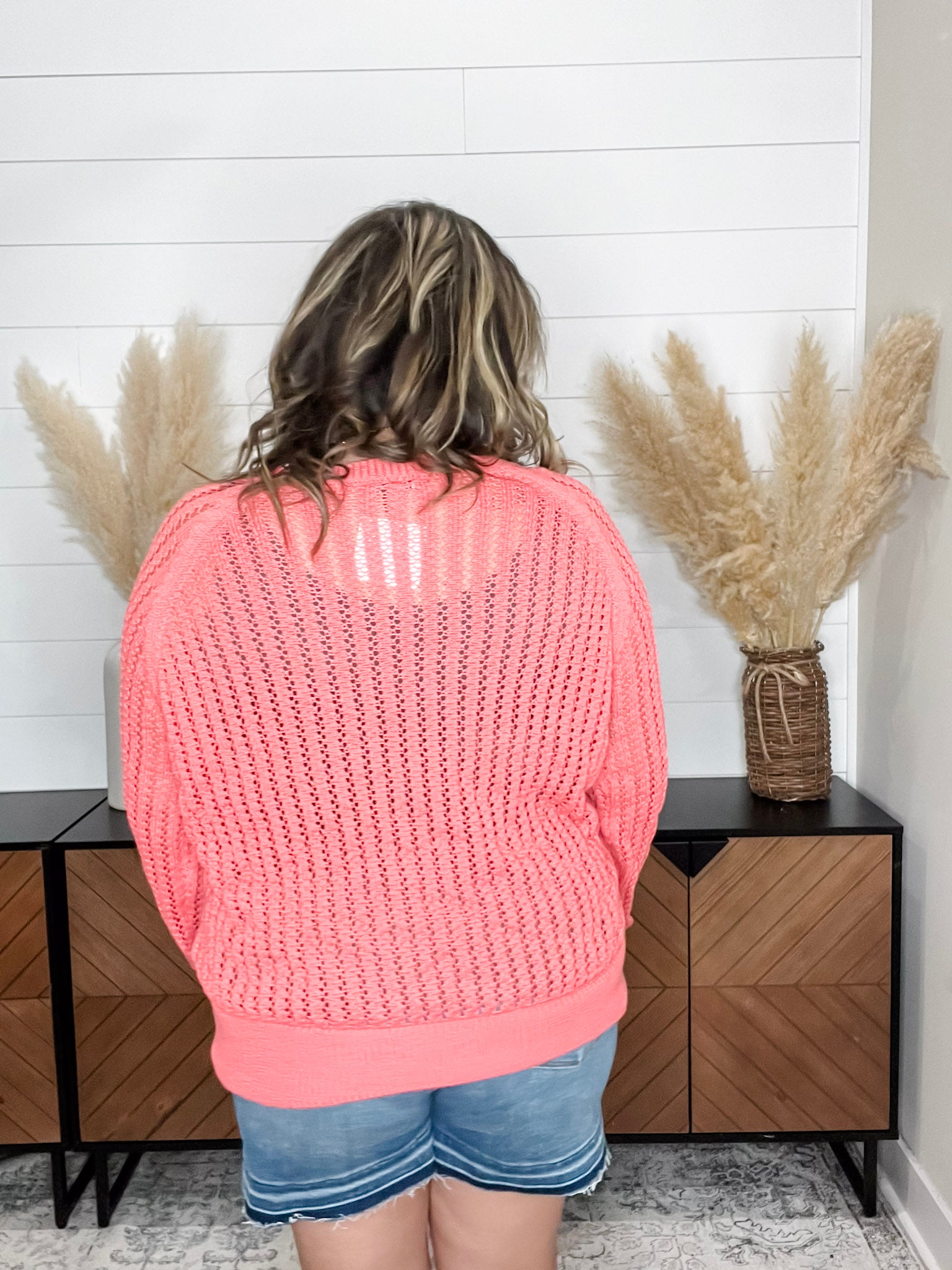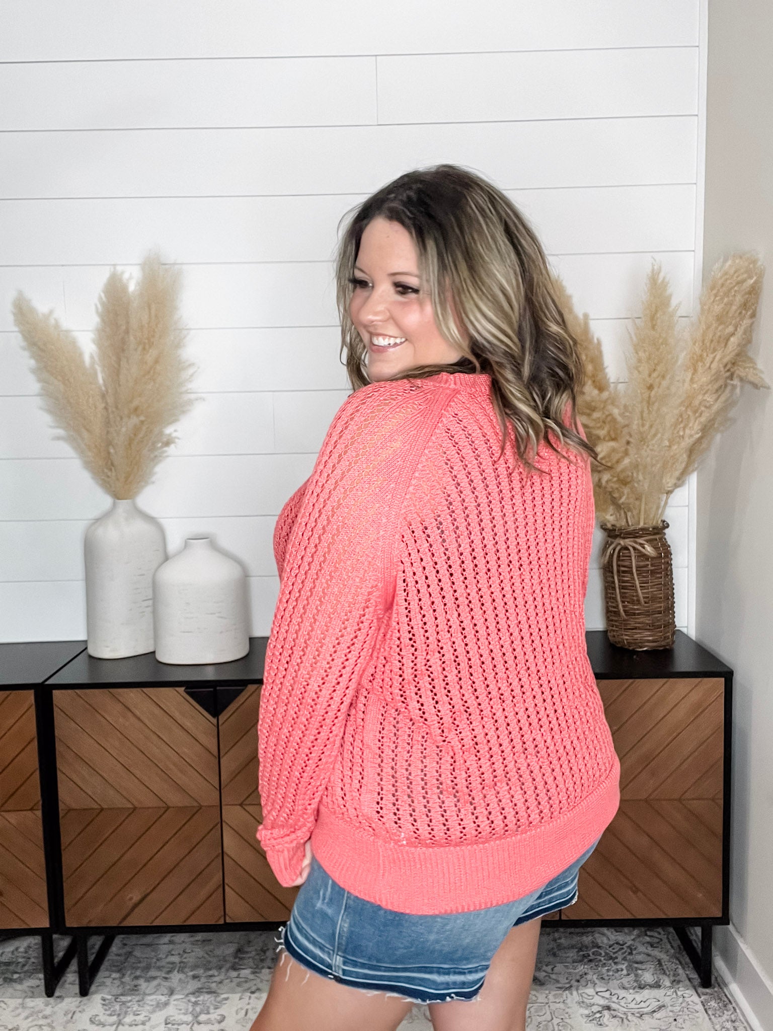 "Cut the Chill" Long Sleeve Lighweight Sweater (Coral Pink)