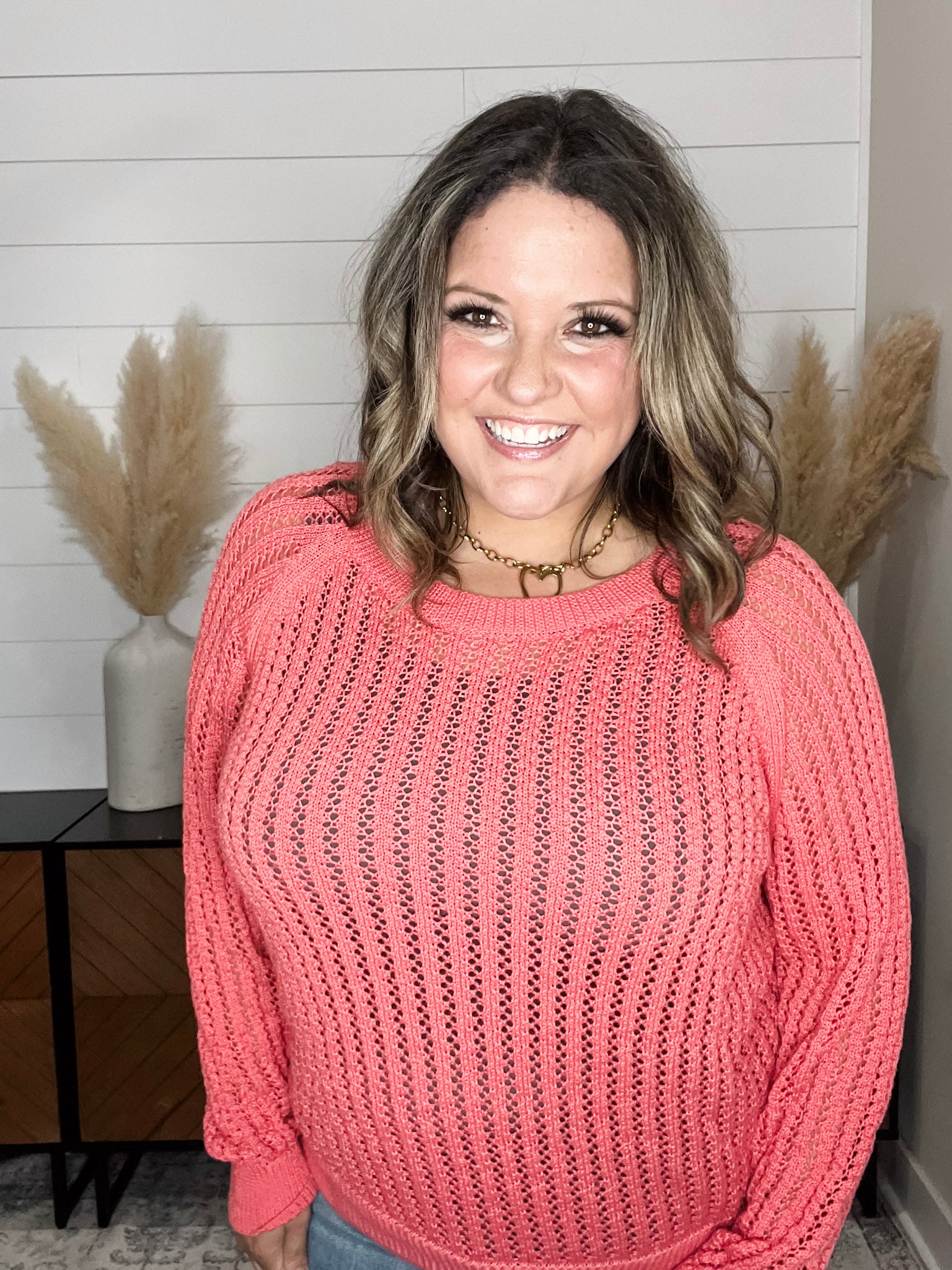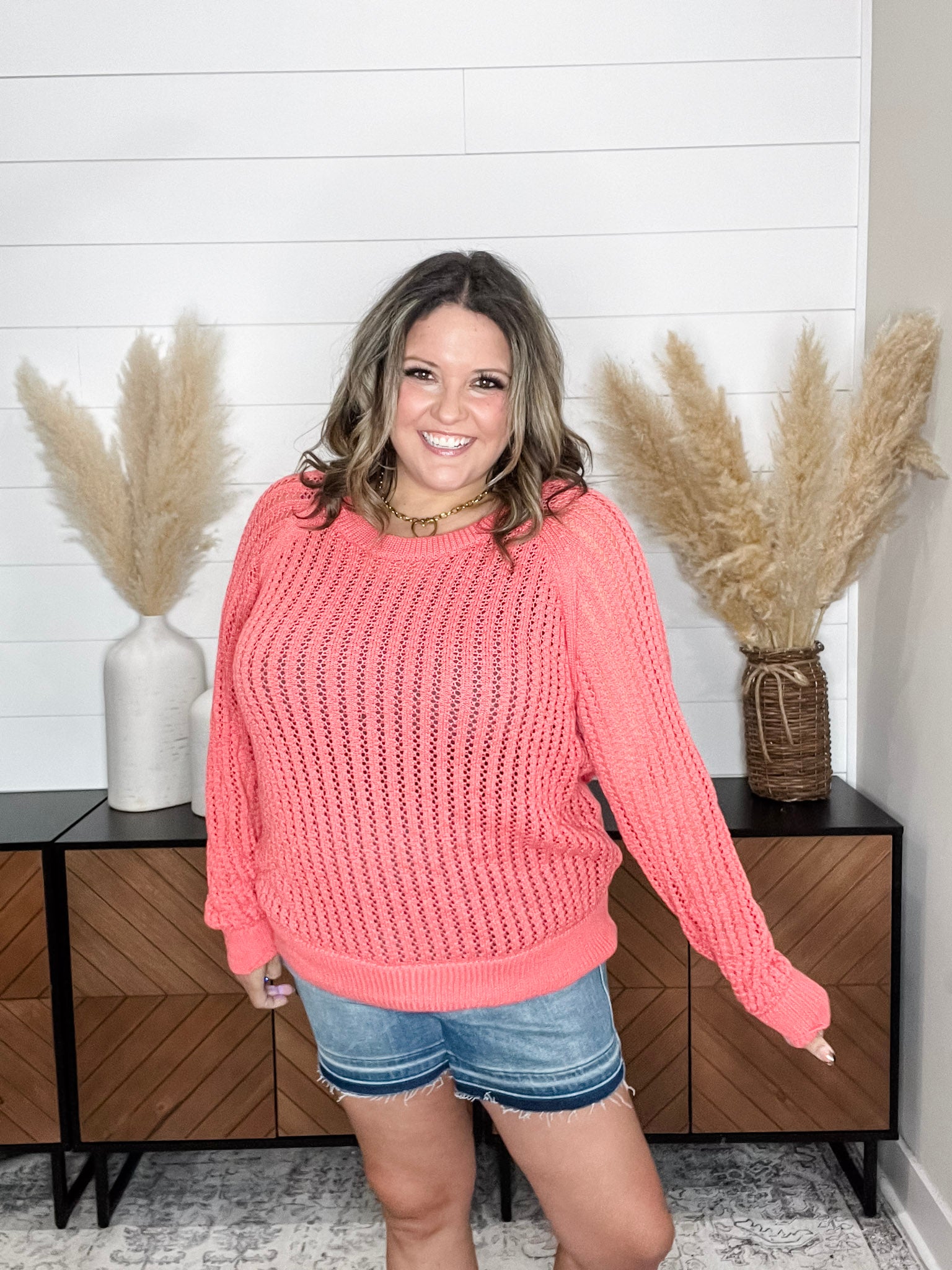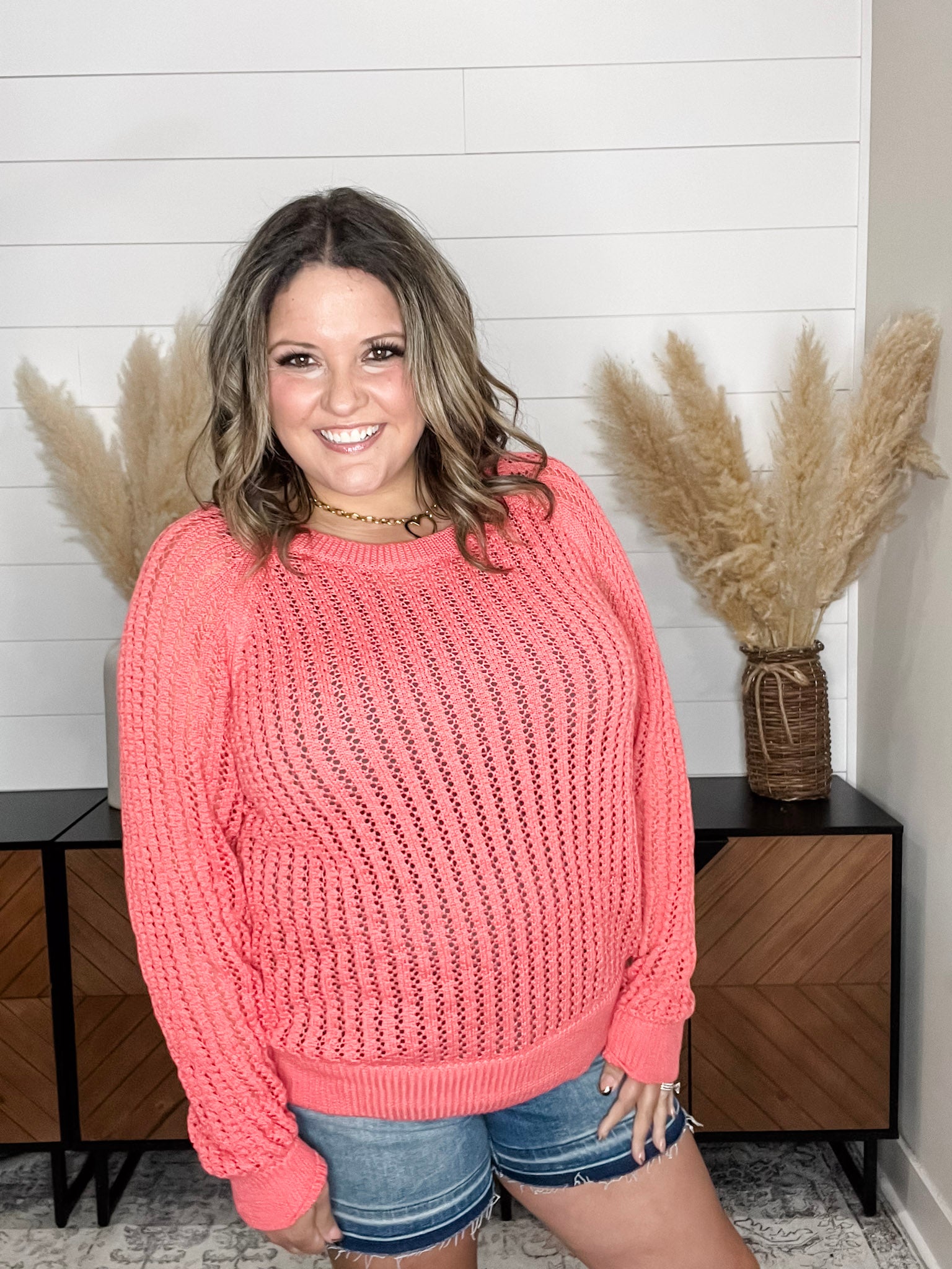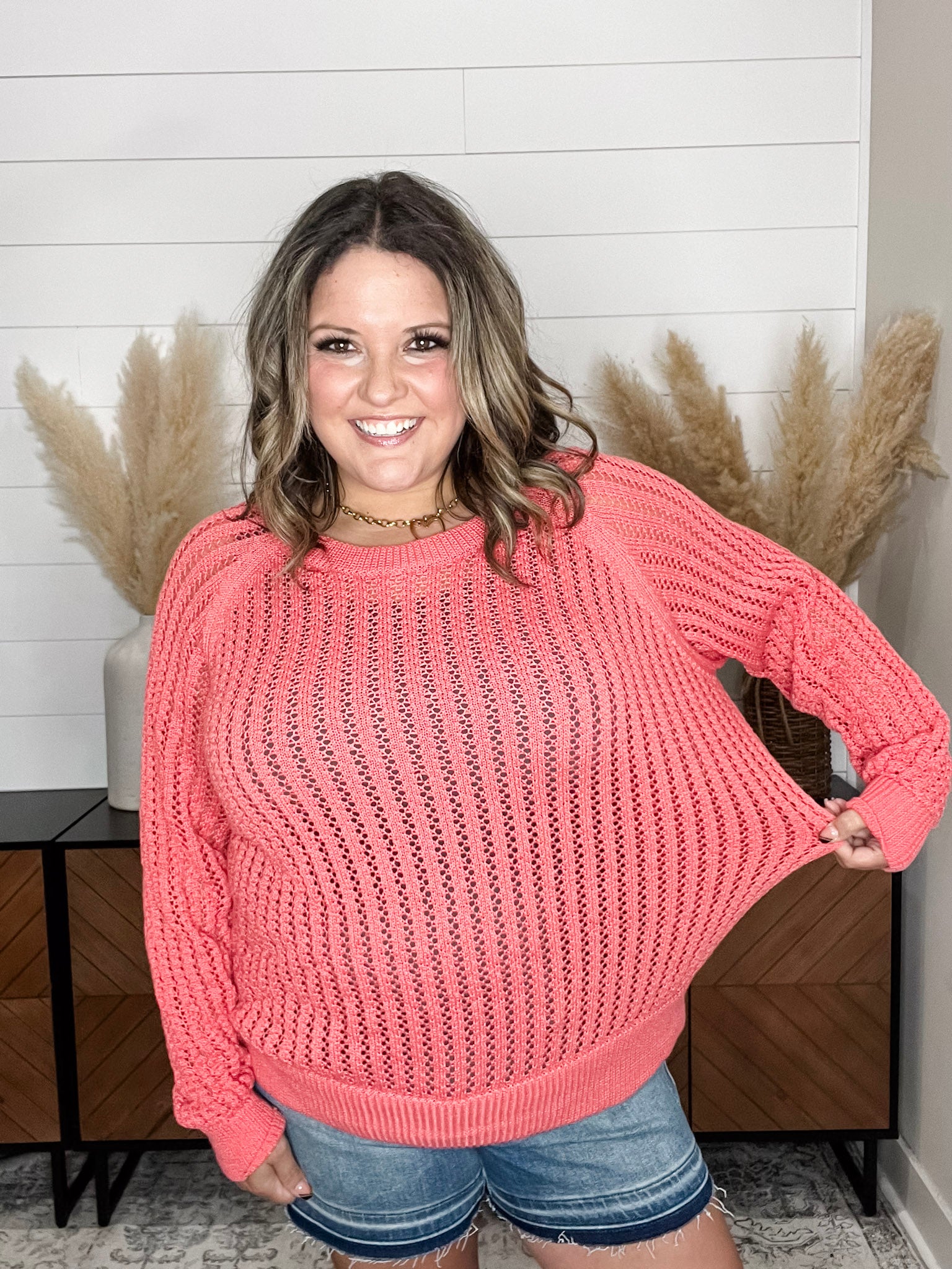 "Cut the Chill" Long Sleeve Lighweight Sweater (Coral Pink)